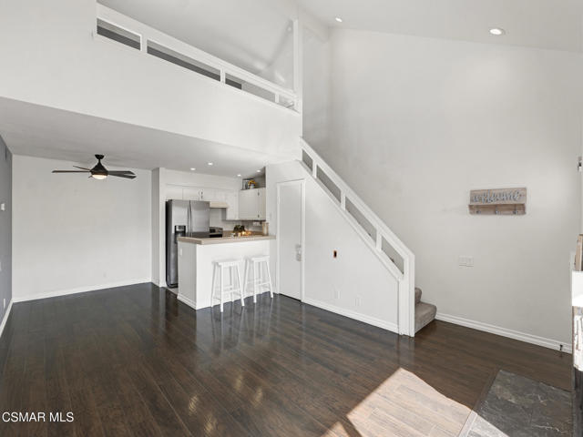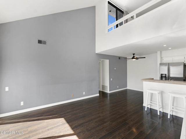 This is the sign you have been waiting for! A light and bright spacious condo with a huge open loft and two, yes 2 outdoor living spaces!! Upon entry you are greeted with a light and bright open floorpan and high vaulted ceilings. The kitchen offers a breakfast bar and dining area overlooking the family room, fireplace and main floor balcony. Also on the main floor is the primary suite that includes a large bathroom with plenty of counter space, walk-in closet and separate shower room. You also have your very own in unit laundry closet. Upstairs you will find a large open bright loft and a slider leading to yet another private outdoor deck/roof top patio ready for sunbathing, BBQ or outdoor dining while enjoying our fabulous California weather and sunsets. The loft is perfect for an office, game room, extra sleeping or guest quarters. This particular back unit offers one of the best and quiet locations in the complex being just steps away from one of the 2 pools as well as the extra allotted parking area. Which your guests will just absolutely LOVE when they come to visit! Also includes a private 1 car garage, central A/C, recessed lights and so much more. This fantastic condo is such a great find located in the beautiful Simi Valley Perfect for the commuter as well! Don't hesitate to check this one out!!