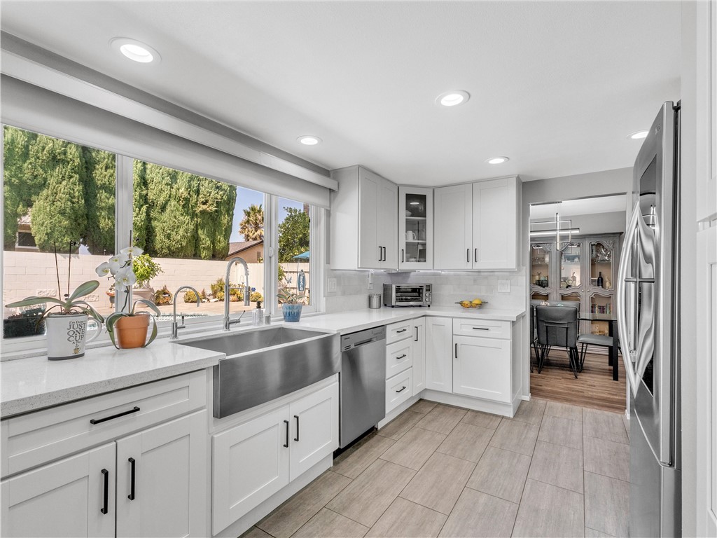 Welcome to your tastefully renovated home that blends luxury, function, and lifestyle in a centrally located neighborhood. With over $275,000 in upgrades, every detail has been thoughtfully designed to elevate daily living. Inside, discover a light-filled floor plan anchored by a beautiful & functional kitchen boasting custom cabinetry, stainless appliances, quartz counters, and a plenty of storage. The living and dining areas flow seamlessly, enhanced by tile and plank flooring, designer fixtures, plantation shutters, and motorized blinds. With five bedrooms and 3.5 fully remodeled baths, there’s space for everyone—whether you need a home office, guest suite, or a private retreat. Upgrades go far beyond the surface, including a new HVAC system, updated electrical, attic insulation, whole-house water filtration system, garage sub-panel with EV charging, Solar with battery backup and 8 HD security cameras for peace of mind. Step outside to your private backyard oasis, complete with a sparkling pool and spa, custom landscaping, and spacious entertaining areas—perfect for relaxing weekends or lively gatherings. Located just minutes from Trader Joe’s, Sprouts, Starbucks, great dining, and award-winning schools, this home offers the best of both luxury and convenience.