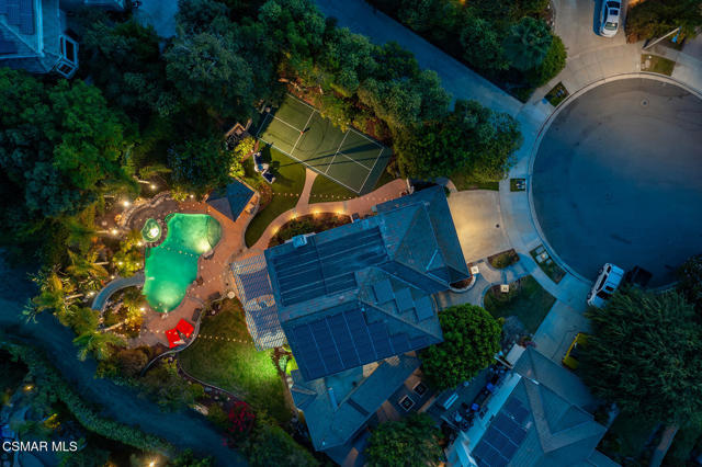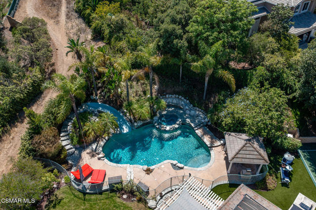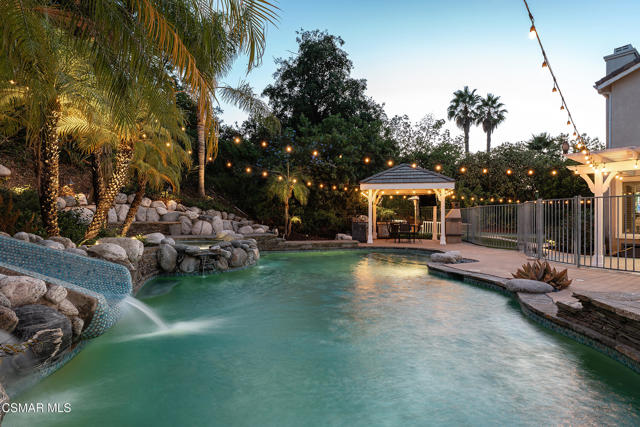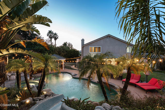 Most homes are a chapter - this one is the whole story.Tucked away at the end of a serene cul-de-sac in Wood Ranch's coveted Valley View Estates, welcome to 206 Shady Hills Court, a nearly 4,000 square foot residence that embodies both luxury and livability. Set on a flat ⅓-acre lot, this rare model property blends thoughtful design with resort style amenities, offering a true indoor outdoor lifestyle.Inside, the home features 5 spacious bedrooms and 4 bathrooms, with a layout designed for comfort and flexibility. The main floor includes a beautifully remodeled kitchen with modern finishes, a generous bedroom suite with an attached full bathroom, and a sprawling 800+ sq. ft. game/guest suite complete with its own kitchenette, full bath, steam shower, and private access to the backyard. Upstairs, the primary retreat and three additional bedrooms provide a perfect balance of space and privacy. A three zone HVAC system ensures climate control efficiency throughout the home, while the three car garage with two Tesla chargers adds practical convenience. The home is also equipped with solar system for both the home and the pool. The backyard features a resort style pool with slide and solar heating, a large BBQ area with a full size outdoor fire place, and a full size electric sauna. Active living comes alive with a private sport court, ideal for basketball or tennis, and the large grassy area framed by multiple mature fruit trees offers both shade and charm. The property is maintained with ease thanks to a Wi-Fi enabled smart sprinkler system, ensuring lush grounds year round.Beyond the home itself, Valley View Estates enriches the experience with access to a private lake that allows fishing, beautifully maintained greenbelts, and common areas. This prime Simi Valley location is also close to Wood Ranch Golf Club, award-winning schools, Rancho Madera Community Park, hiking trails, shopping, and dining.206 Shady Hills Court isn't just a home - it's a lifestyle and a place where every detail has been carefully crafted for comfort, connection, and endless enjoyment.https://www.206shadyhillscourt.com
