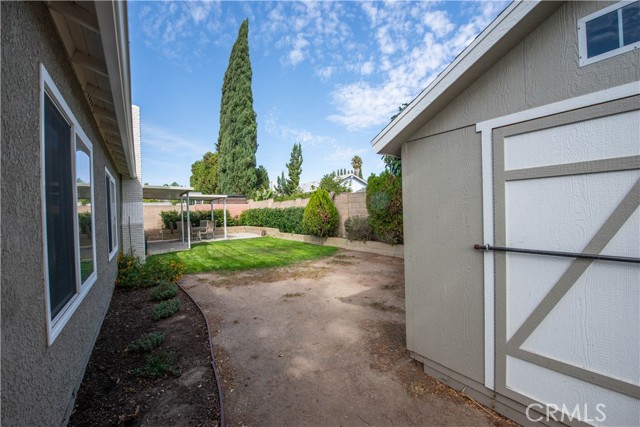 New roof (approx. 1 year old), double-pane windows, copper plumbing, elegant wood plantation shutters, fresh interior and exterior paint, and included security cameras. This 4-bedroom, 2-bathroom single-story home is situated on a desirable corner lot. The primary suite includes a walk-in closet and a walk-in shower with built-in seating for added comfort. This home has a spacious and functional layout, a formal living room, dining area, and a cozy family room with a fireplace — perfect for everyday living and entertaining. Natural gas is also available for appliances. Outdoor features include a newer backyard shed for additional storage, rain gutters, sprinklers, and mature fruit trees add to the home's appeal. Conveniently located near major freeways, shopping centers, restaurants, parks, and more — this home offers both comfort and convenience. Don’t miss seeing this house and schedule your private tour today!