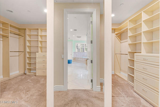A rare offering in Simi Valley, this custom 6-bedroom, 6.5-bath estate crowns the end of a quiet cul-de-sac, presenting over 5,600 sq. ft. of refined living on a 25,000+ sq. ft. lot. Currently owned by a Hollywood producer who sought a private retreat outside the city, the estate has also hosted gatherings attended by movie stars, directors, and producers -- a testament to its scale and entertaining appeal. The approach is framed by mature shade trees, lush landscaping, river rock accents, and a custom river rock mailbox. An extra-long and wide stamped concrete driveway with possible RV parking enhances curb appeal, while the custom double-door entry with leaded glass sidelights sets a welcoming tone. Inside, the foyer opens with real wood floors, soaring ceilings, and an artisan agate chandelier. To the left, a study/office with floor-to-ceiling custom built-ins provides the perfect setting for a home library or workspace, while still offering the versatility of a bedroom with ensuite bath. Nearby, French glass doors open to an additional room, previously used as a music room, ideal as a den, playroom, or creative space. The formal living room rises to 30 feet with abundant windows and a travertine raised-hearth fireplace, while French doors lead to the backyard. Off the living room, a dedicated theater room boasts a 210' screen, Sony projector, blackout curtains, surround sound, and 7 reclining chairs -- all included. The gourmet kitchen showcases two full-capacity Sub-Zero units--refrigerator and freezer, a Viking 6-burner cooktop with griddle and hood flanked by custom spice racks, a Viking microwave, Bosch dishwasher, abundant cabinetry with built-in storage nooks, and an extra-long granite island with travertine accents and pendant lighting. A butler's pantry with sink, wine refrigeration, and walk-in pantry enhances functionality, while a built-in china cabinet and casual dining area add charm. A second bedroom with adjacent bath, laundry room, and guest powder room complete the lower level. Upstairs, an open loft-style landing creates a striking catwalk across the home, overlooking the living areas below and connecting the bedrooms. The primary suite offers a private retreat with a balcony overlooking the backyard, sitting area, fireplace, dual walk-in closets with organizers, and a marble bath with dual vanities, soaking tub, and steam shower with dual heads. Three additional ensuite bedrooms with closet organizers complete the upper floor. The backyard feels like a private park, with expansive lawns, stamped concrete patios, covered sitting areas, koi pond with waterfall and wood bridge, rose gardens, grapevines, and fruit trees -- plus plenty of space to add a pool, greenhouse, or other features to fit your lifestyle. The spacious 3-car garage includes epoxy flooring, overhead storage, an updated electrical panel, two 220v outlets for EV charging, and a full-size safe. Energy efficiency is enhanced by a solar system paired with four Tesla wall batteries, designed to provide significant backup capability, including support for the home's zoned A/C system. Additional features include three fireplaces, dual-paned windows with shutters, Nest temperature controls in every room, a recirculating water heater, a replaced sewer line, and fiber-optic connectivity for reliable high-speed internet access. Additional highlights include no HOA, a quiet neighborhood setting, and proximity to Lemon Park. Finishing touches include all artisan chandeliers and sconces handcrafted by Corbett. Blending custom design, thoughtful upgrades, and resort-style grounds, this estate is truly one of Simi Valley's premier residences.