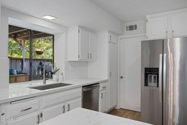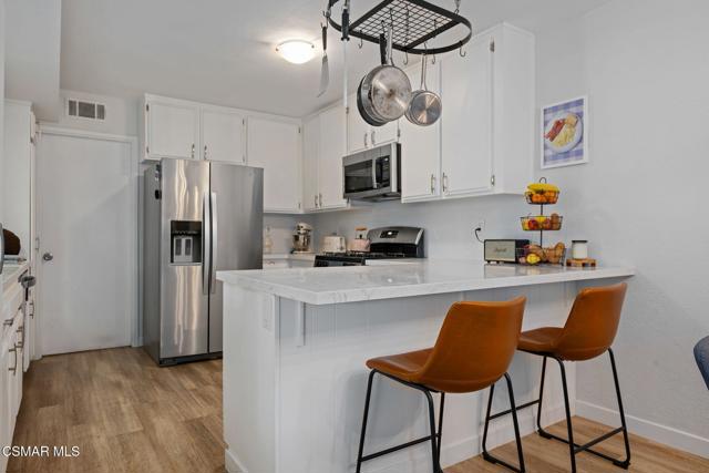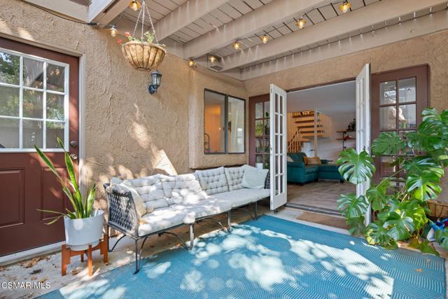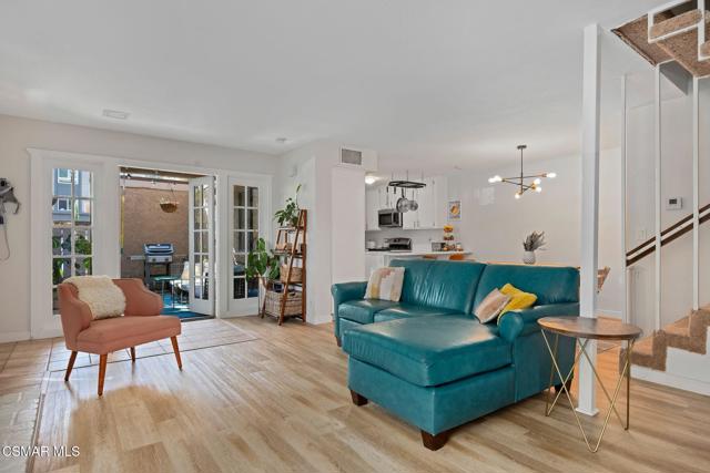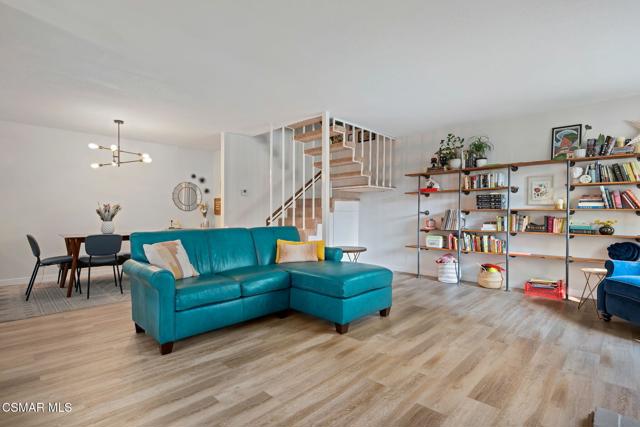 Welcome to this beautifully remodeled townhome in the sought-after Park Lane community of Simi Valley. Perfectly located near neighborhood parks, boutique shops, dining, and entertainment, this residence combines modern upgrades with everyday convenience.The bright and open floorplan features three bedrooms and one and a half bathrooms across two levels. The spacious living room, enhanced with newer wood laminate flooring and a cozy fireplace, flows seamlessly into the upgraded chef's kitchen - complete with stainless steel appliances, quartz countertops, decorative tile backsplash, and a generous breakfast bar. The powder room is located right off the dining room conveniently for all guests.Upstairs, the primary suite offers a private balcony with scenic views and an elegantly updated bath. Two additional bedrooms provide comfort and flexibility, each complemented by plush carpeting. The upstairs full bathroom has been fully remodeled with stylish designer finishes.Additional highlights include fresh interior paint, smooth ceilings, updated lighting and hardware, central A/C, and a dedicated laundry room. A large private covered patio provides the perfect setting for relaxing or entertaining outdoors.Residents of Park Lane enjoy access to community amenities including a sparkling pool, grassy pathways, and play areas. With its prime location and turnkey upgrades, this home presents a remarkable opportunity in Simi Valley.