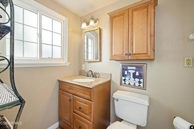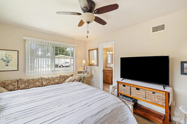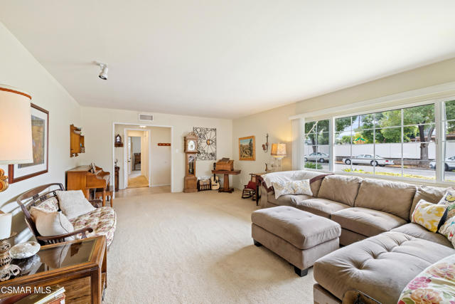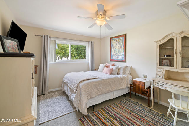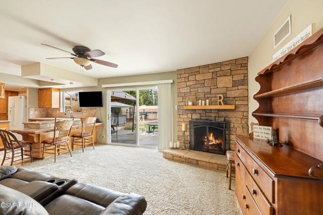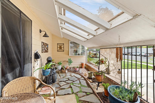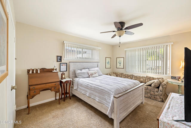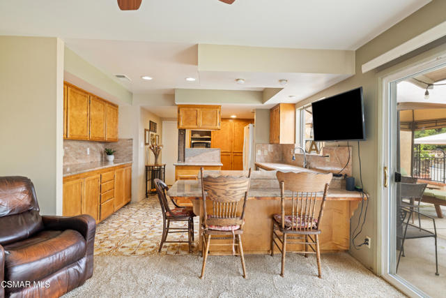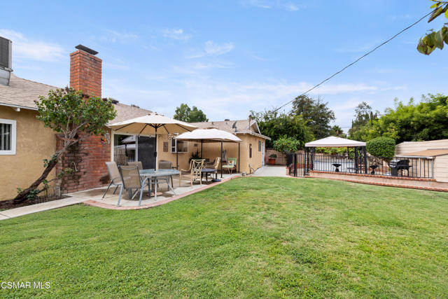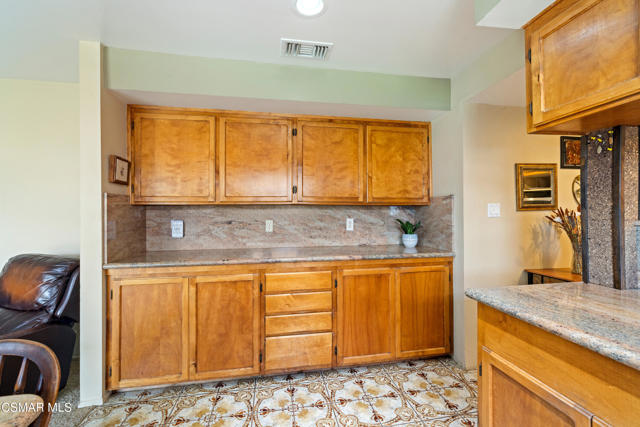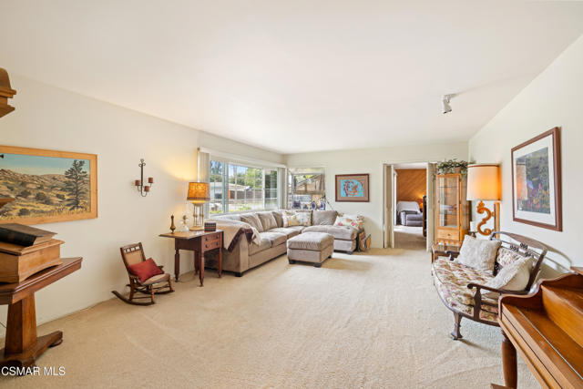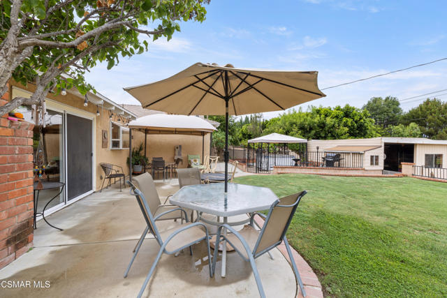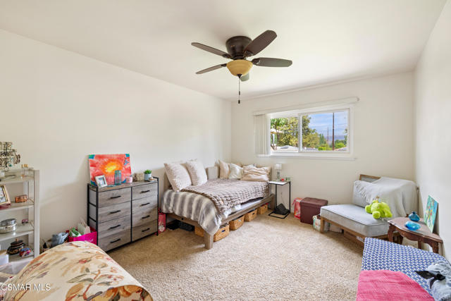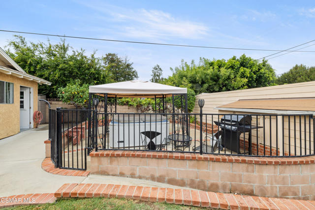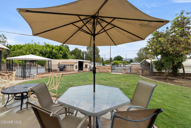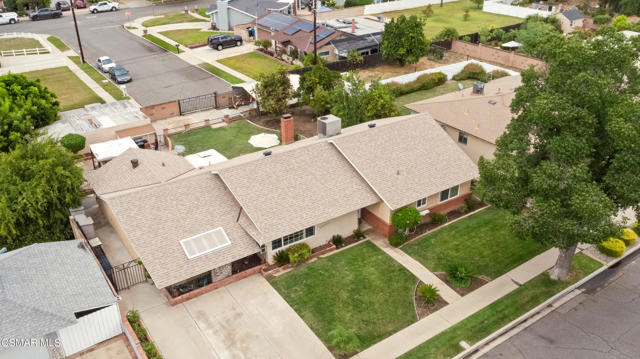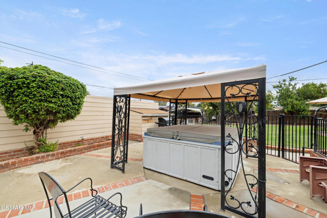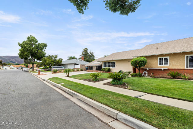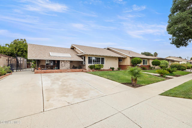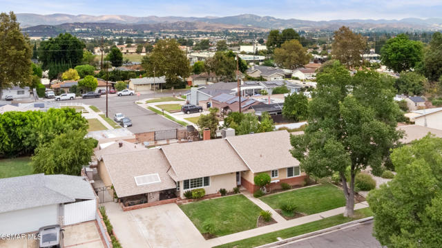 This stunning Tom Paul home is loaded with features. The 10,018 sq. ft. lot has 3 avocado, 1 orange, 1 lemon, and 1 tangerine tree. The back yard features a rolling wrought iron gate which gives access to two large out buildings with covered parking for at least three cars and is fully paved with concrete. The upper level is separately fenced and gated with a manicured lawn with automatic sprinklers. It also features a relaxing spa for those cool Simi Valley evenings. The home itself has a huge 25 X 17 living room with plenty of windows making it light and bright. The expansive family room with wood and gas burning fireplace has a great view of the back yard . The kitchen is very spacious with loads of cabinets, granite, and a garden window with a view. There also several ceiling fans, tons of linen storage, recessed lighting everywhere and of course central air and heat. Another great feature is the added laundry room with up graded electrical panel and again lots of added storage. The washer/ dryer/ and refrigerator are also included. This is a VIEW property