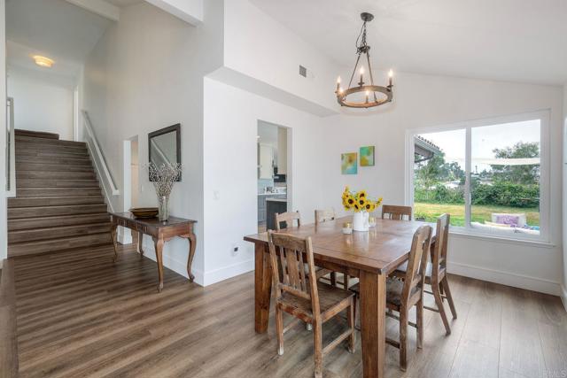 Beautiful Solana Beach house with recent interior remodel completed. Fantastic floor plan consisting of three bedrooms upstairs including a spacious primary suite plus one bedroom/office and bathroom on the main level. Enjoy soaring vaulted ceilings, an extra wide staircase and wood flooring in this sunlit home. The main level consists of a living room, formal dining area and comfortable family room with a fireplace. Updated gourmet chef's kitchen, beverage fridge, induction stove cooktop, extra kitchen storage and a Zip hydro faucet for instant boiling, chilled & cold sparkling water. This light and bright home has energy efficient windows and sliding doors. Nature abounds in the sunny garden with eco-friendly landscaping, updated hardscape, a fenced backyard and a pet safe screen enclosed catio. West facing sunset views and ocean breezes delight. House is located on a cul-de-sac street. Nearby San Dieguito Park, Lomas Santa Fe County Club, schools, walking/hiking trails, restaurants, shopping on Cedros Avenue and the beach at Fletcher Cove.
