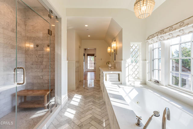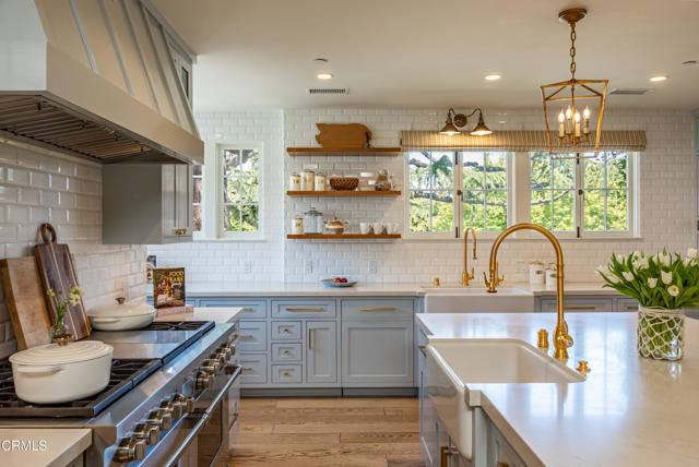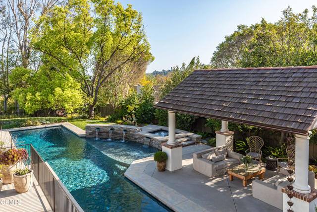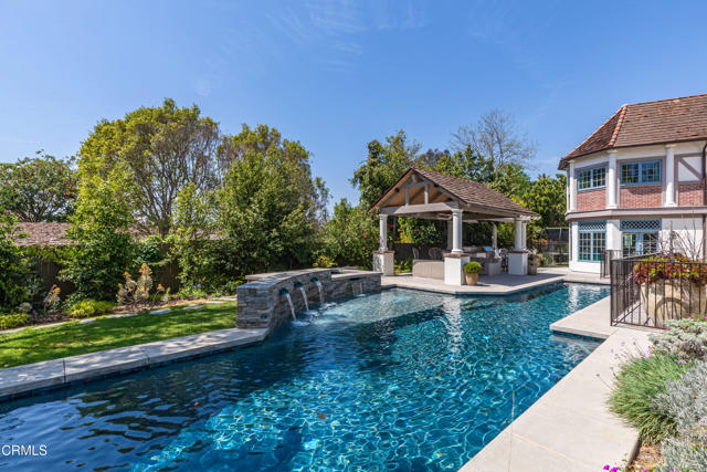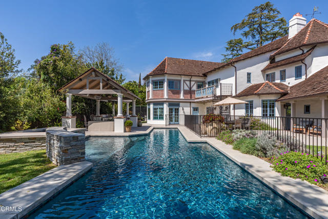 Custom Built French Normandy Style Architectural Dream Home masterfully reimagined in 2018 by Page & Turnbull Architects, completely renovated by Hartman Baldwin, & exquisitely designed by Willa Ford Interiors. This magnificent 3 story property is a state-of-the-art compound perched atop a knoll on one of the most beautiful streets in South Pasadena, a coveted neighborhood praised for its top-rated public & private award-winning schools. Perfect for grand scale entertaining, dramatic wrap around grounds connects the entire house with an indoor/outdoor flow bringing everyone to the spectacular backyard oasis, a heated 60 ft saltwater lap pool & spa, views & garden vistas, heated cabana equipped with built-in full outdoor kitchen, 36' BBQ, 2 ranges, fridge, sink, outdoor fireplace. Inside, welcome guests into an elegant entry foyer, stunning formal living room, soaring cathedral ceilings, leaded windows, 1929 original design fireplace, new open-plan chef's center island kitchen, 60' Wolf dual oven/range, 36' SubZero fridge & 36' freezer family room, additional playroom/lounge, 5 Bedrooms, 7 Bathrooms, luxurious Primary Suite with balcony access to backyard, breathtaking vistas of the green outdoors. Highlights: White Oak Hardwood floors, hand scraped Herringbone flooring, Pure White Caesar-stone countertops, Calcutta Gold tile backsplash, Gilded Iron & Satin Gold furnishing details, Schumacher wallpaper, steep ceiling beams, tankless hot water heaters, LifeSource whole house filtered water system, garage level to kitchen Dumbwaiter, EV charger, Alarm System, Security Cameras, Flexible basement guest quarters, Mudroom, 2 sets of Laundry Rooms, 2 dishwashers, 2 oversized attached Car Garage with long driveway room for multiple car parking spaces. The architectural elements & extraordinary attention to quality & details, make this estate a one-of-a-kind lifetime opportunity investment for the discerning buyer seeking ready-to-move in Forever Home!