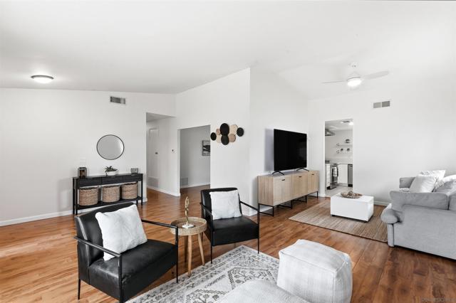 Discover this beautifully upgraded single-story home in the highly desirable Rancho San Diego community. Ideally positioned on an elevated lot with picturesque mountain views, this residence features an open floorplan with high vaulted ceilings, creating a bright and airy feel throughout. Enjoy both a spacious family room and living room, ideal for gatherings or quiet relaxation. The modern upgraded kitchen offers stainless steel appliances and stylish finishes, while dual pane windows enhance comfort and efficiency. Step outside to a large, covered patio overlooking the low-maintenance backyard with turf—south part of the lot conveys with the home, it allows for extra expansion of the backyard, perfect for outdoor living/gardening/extra storage space or more!! Situated on a corner lot with a large driveway and extra assigned parking, this home offers exceptional convenience. Additional highlights include leased solar for energy savings and access to two community pools, parks, tennis courts, and playgrounds. Close to hiking trails, schools, shopping, major highways and more! Experience resort-style living with stunning views in one of East County’s most sought-after neighborhoods!