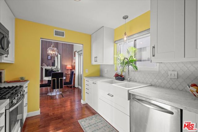 A Harmonious blend of Style and Comfort in this remodeled, Turnkey 1 bedroom plus Loft with a Private Rooftop Deck home in the best part of Studio City. Located on the Top Floor and in the rear portion of the building this perfectly situated Contemporary with Architectural design elements and European flair is truly a special place to spend time. The commanding space is graced with 17 ' high ceilings and oversized windows ushering in natural light creating an eclectic and energizing creative space while providing a serene respite from the burgeoning neighborhood surround. The main level consists of a comfortable living room, a dining area that plays to an expansive balcony, gorgeous remodeled gourmet kitchen, a designer done bathroom, and primary bedroom with walk-in closet. The upper level provides a loft space that can be used as a second bedroom/office/den/artist retreat and private rooftop deck for sunbathing, yoga, and private moments. The new windows & doors, newer HVAC system, and overall pristine conditions combine to provide the next owner a move in ready oasis. 2 car parking and washer dryer hookups in unit complete this showcase of a home: truly a special place to spend time. At your doorstep you will find Equinox, Erewhon, all the wonderful shops and restaurants of Sportsman Lodge and Ventura Blvd...Come and see this special offering.