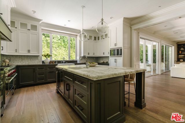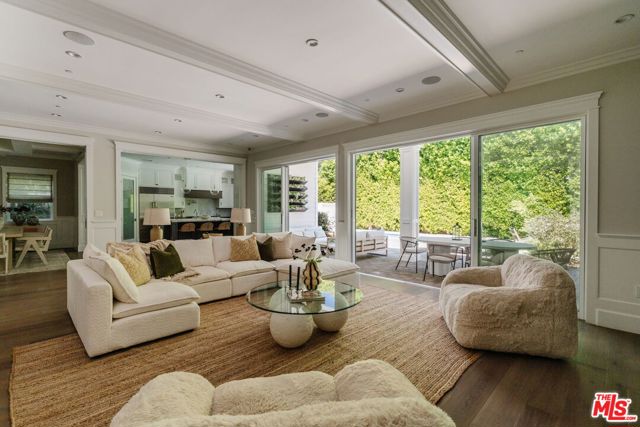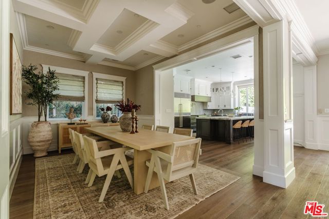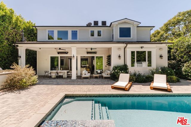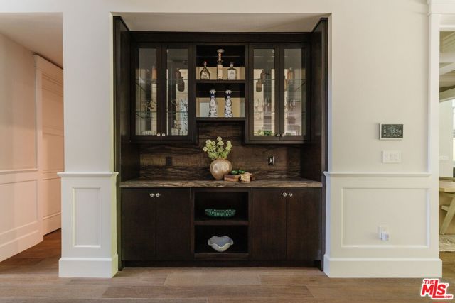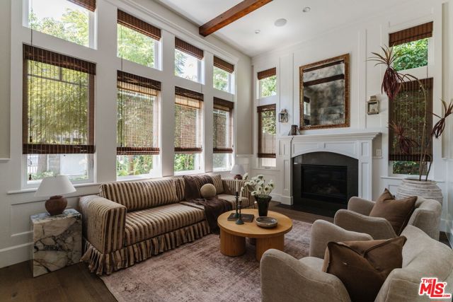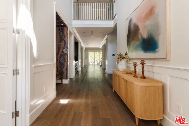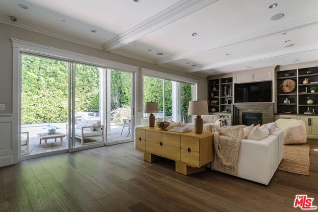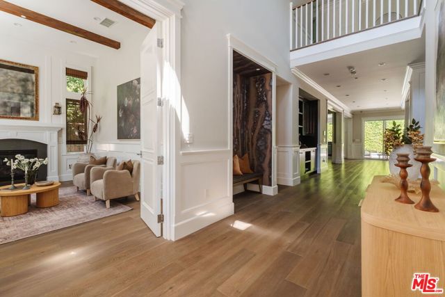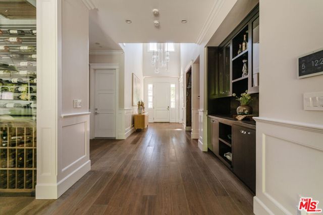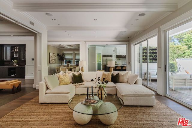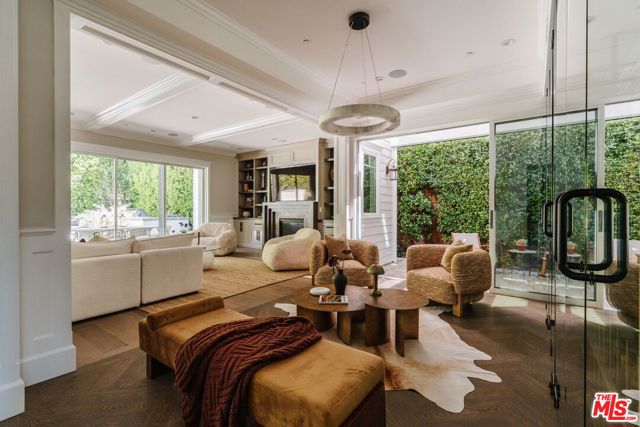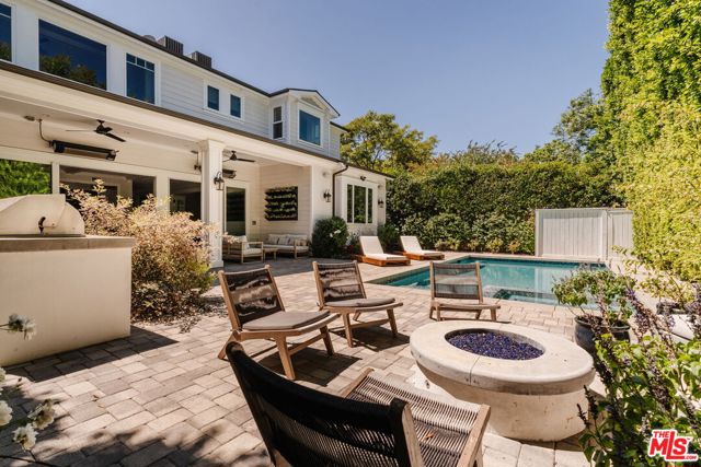 Nestled in the highly coveted Longridge Estates, one of Studio City's most prestigious enclaves, this fully gated 5-bedroom, 6-bathroom home spans over 4,300 square feet of refined living. Offering both privacy and elegance, the residence combines timeless design with modern comforts, creating a seamless balance between gracious entertaining and relaxed everyday living. The family room flows seamlessly into the formal dining area, where impressive high ceilings and exquisite woodwork details create a grand sense of scale. A dramatic stone bar, floor-to-ceiling refrigerated wine wall, and built-in entertainment center with fireplace serve as striking focal points. The chef's kitchen is a true centerpiece, featuring a generous eat-in island, elegant backsplash and hood, ample cabinetry, and a walk-in pantry thoughtfully designed for both function and style. Expansive sliding doors with custom screens open to the backyard. The side patio is appointed with a full awning, offering shaded comfort during the summer months. Outside, the serene backyard retreat is enveloped by tall hedges, ensuring complete privacy. A sparkling pool and spa take center stage, accompanied by a built-in outdoor kitchen with BBQ and entertainer's drink station, a fire pit with integrated seating, and elegant lounge and dining areas. This exquisite outdoor sanctuary is perfectly designed for both lively gatherings and tranquil relaxation. Completing the main level is a formal living room with a custom fireplace and large windows overlooking the front-yard lawn. A downstairs bedroom is perfectly suited as a guest suite or home office. The formal living and dining rooms are a perfect setting for your next dinner party. Upstairs, a landing with built in desk is perfect for study or work. Four generously proportioned bedrooms each feature ensuite bathrooms. The serene primary suite is a true retreat, boasting vaulted ceilings, two walk-in closets, a fireplace, and a spa-inspired bath with soaking tub, oversized shower, and double vanity. A convenient laundry room completes this level, while abundant windows throughout flood the home with natural light. Additional highlights include a state-of-the-art Control4 smart home system, custom window coverings, soaring ceilings and finely crafted cabinetry throughout, and a gated driveway with a finished two-car garage. Situated just south of the Boulevard, the home is moments from Ventura Boulevard's premier shops, restaurants, and everyday conveniences, including Erewhon and the Shops at Sportsmen's Lodge. Sophisticated, private, and truly exceptional, this is Studio City living at its finest.