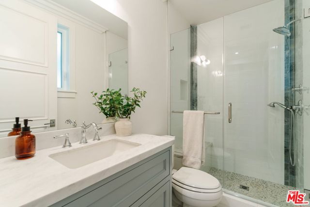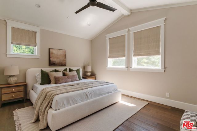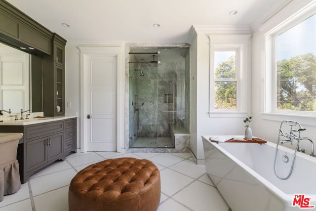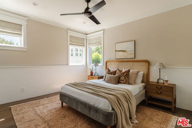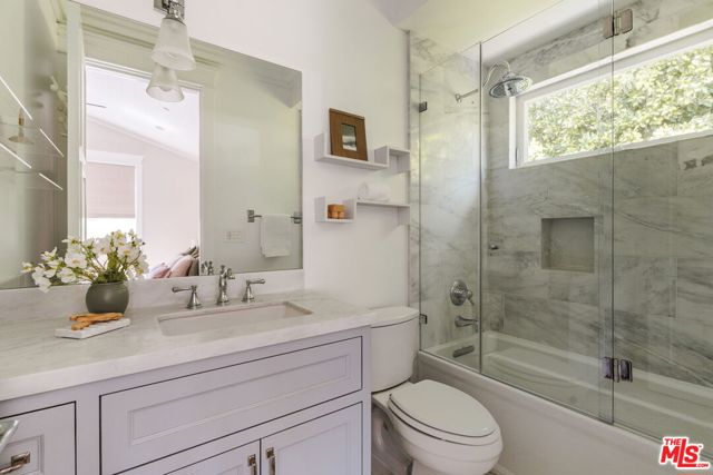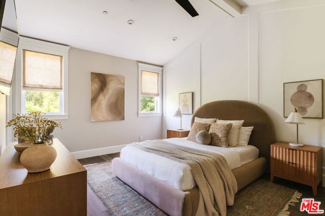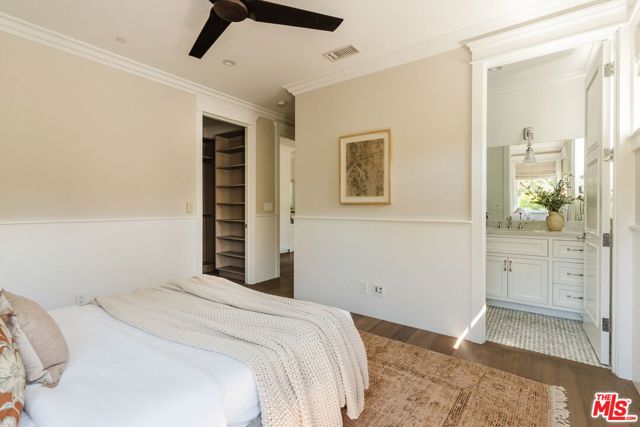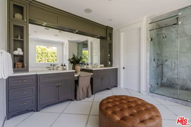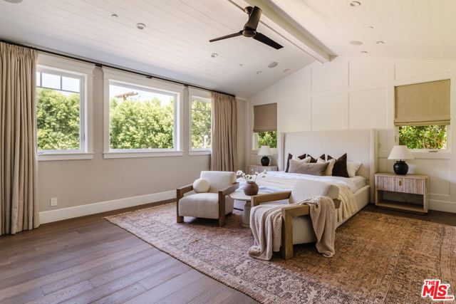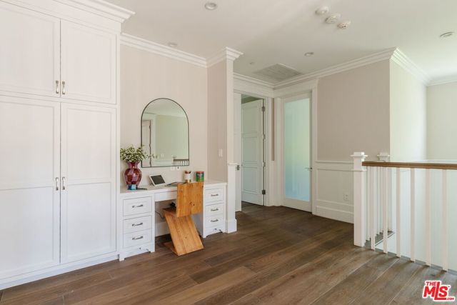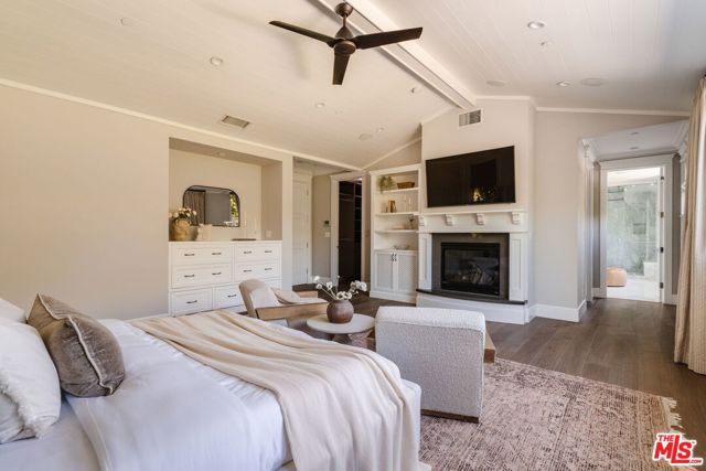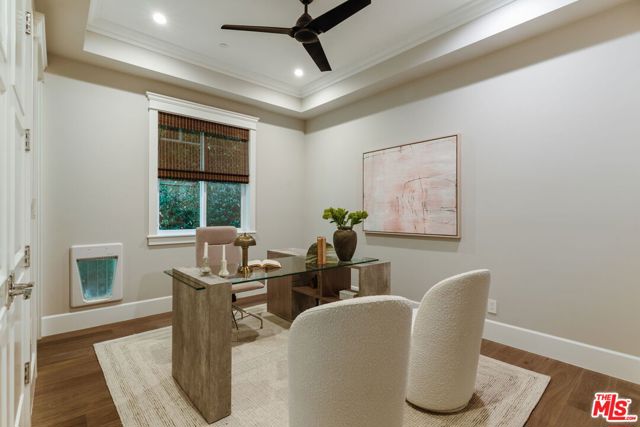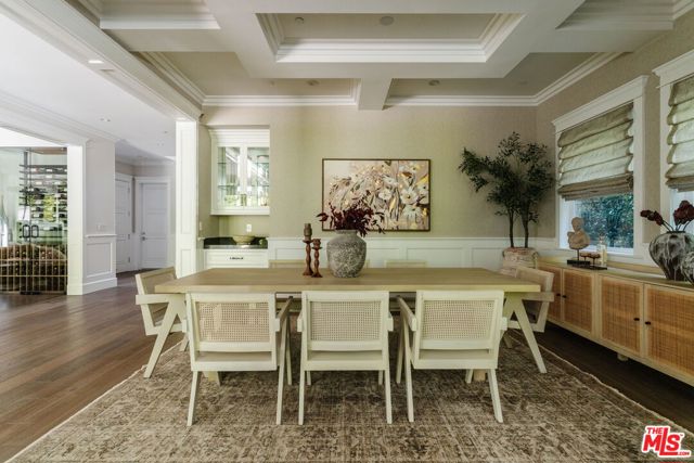 Nestled in the highly coveted Longridge Estates, one of Studio City's most prestigious enclaves, this fully gated 5-bedroom, 6-bathroom home spans over 4,300 square feet of refined living. Offering both privacy and elegance, the residence combines timeless design with modern comforts, creating a seamless balance between gracious entertaining and relaxed everyday living. The family room flows seamlessly into the formal dining area, where impressive high ceilings and exquisite woodwork details create a grand sense of scale. A dramatic stone bar, floor-to-ceiling refrigerated wine wall, and built-in entertainment center with fireplace serve as striking focal points. The chef's kitchen is a true centerpiece, featuring a generous eat-in island, elegant backsplash and hood, ample cabinetry, and a walk-in pantry thoughtfully designed for both function and style. Expansive sliding doors with custom screens open to the backyard. The side patio is appointed with a full awning, offering shaded comfort during the summer months. Outside, the serene backyard retreat is enveloped by tall hedges, ensuring complete privacy. A sparkling pool and spa take center stage, accompanied by a built-in outdoor kitchen with BBQ and entertainer's drink station, a fire pit with integrated seating, and elegant lounge and dining areas. This exquisite outdoor sanctuary is perfectly designed for both lively gatherings and tranquil relaxation. Completing the main level is a formal living room with a custom fireplace and large windows overlooking the front-yard lawn. A downstairs bedroom is perfectly suited as a guest suite or home office. The formal living and dining rooms are a perfect setting for your next dinner party. Upstairs, a landing with built in desk is perfect for study or work. Four generously proportioned bedrooms each feature ensuite bathrooms. The serene primary suite is a true retreat, boasting vaulted ceilings, two walk-in closets, a fireplace, and a spa-inspired bath with soaking tub, oversized shower, and double vanity. A convenient laundry room completes this level, while abundant windows throughout flood the home with natural light. Additional highlights include a state-of-the-art Control4 smart home system, custom window coverings, soaring ceilings and finely crafted cabinetry throughout, and a gated driveway with a finished two-car garage. Situated just south of the Boulevard, the home is moments from Ventura Boulevard's premier shops, restaurants, and everyday conveniences, including Erewhon and the Shops at Sportsmen's Lodge. Sophisticated, private, and truly exceptional, this is Studio City living at its finest.