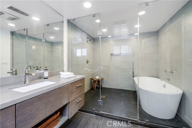 Welcome to this remodeled oasis south of Ventura Blvd in a highly desirable Studio City neighborhood. This stunning two-story home is set back from the street on an oversized 11,488 sf fully gated lot, offering complete privacy. A circular driveway leading to a two-car garage. The interior boasts a chef's kitchen centered around a huge island and equipped with high-end appliances. Updated bathrooms are elegantly appointed with contemporary finishes. Large and tastefully landscaped backyard is an entertainer's dream, providing seamless indoor-outdoor living with a spacious patio, a built-in barbecue, and a huge salt water heated swimming pool, all designed to accommodate large gatherings. Modern conveniences include a whole-house water filtration system. This home is located within walking distance to coveted Carpenter Community Charter elementary school.