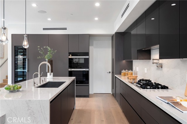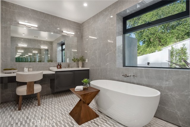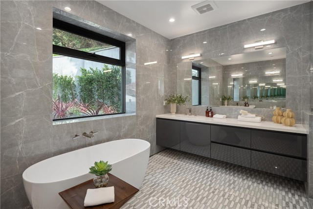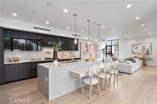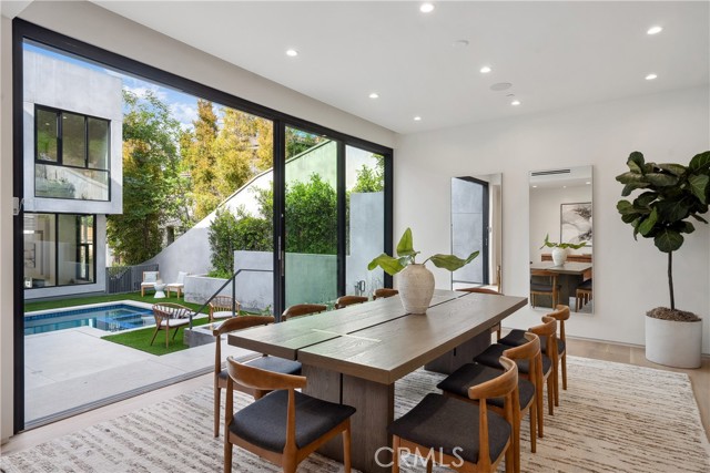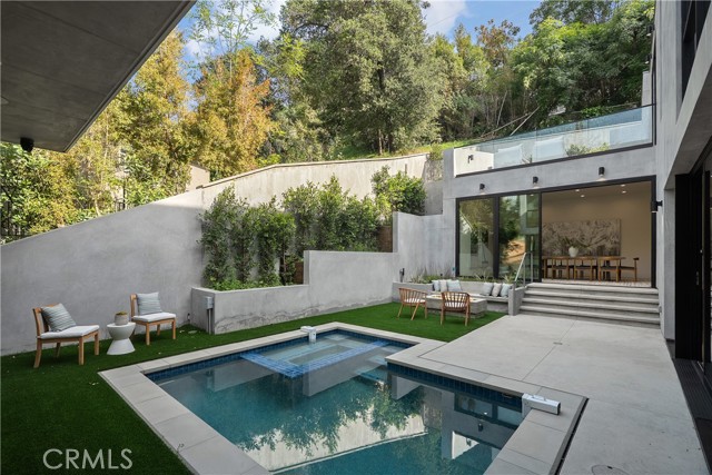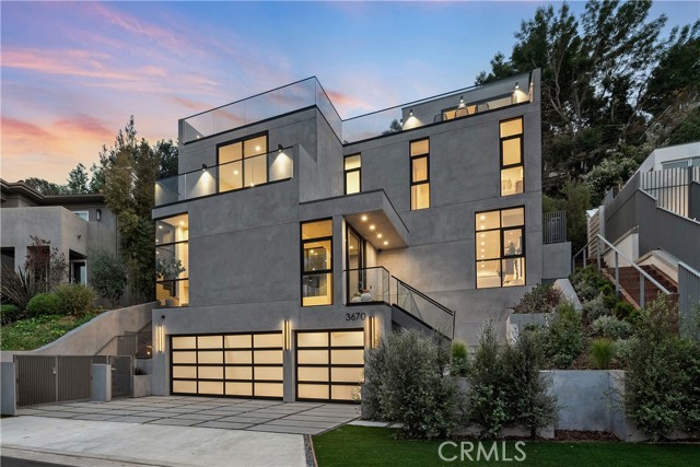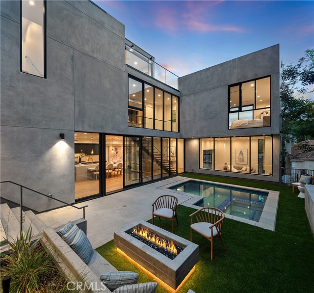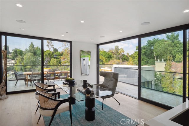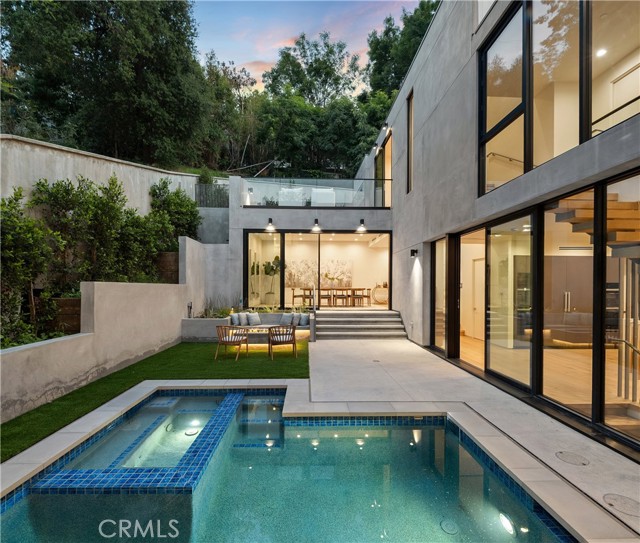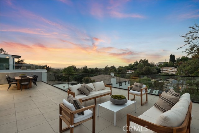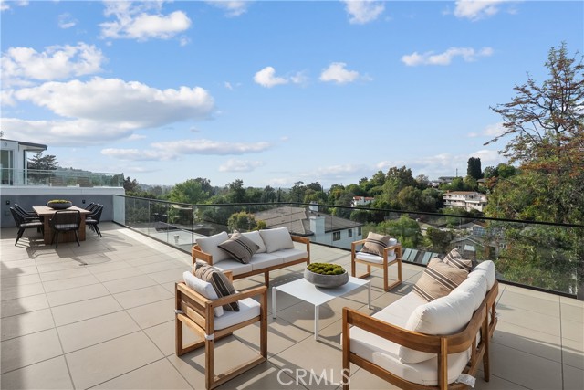 Tucked away in the hills of Studio City on a secluded cul-de-sac, resides this new-construction architectural gem that offers dramatic views of the Valley. A sleek, modern exterior welcomes you into a warm interior filled with natural woods, imported stone and expansive walls of glass that bathe the space in natural light. Thoughtfully designed for both everyday living and entertaining, the open-concept layout is anchored by a spacious family room that flows seamlessly into a gourmet chef’s kitchen equipped with top-of-the-line Miele appliances, an oversized island with seating and walk-in pantry. Slide open the floor-to-ceiling glass doors and step out to your sun-drenched central courtyard – complete with a sparkling pool/spa, cozy built-in fire pit and ample space for lounging or enjoying an al fresco meal. Rounding out the main level is an inviting living room, formal dining room and chic powder bathroom. A sleek floating staircase leads you upstairs, where you’ll find four generously sized ensuite bedrooms, including an impressive primary suite that features a private patio, custom walk-in closet and sumptuous bathroom, boasting a soaking tub, rainfall shower and dual vanities. Up another level, there’s a bonus room with a wet bar and full bathroom that opens to an expansive rooftop terrace, offering breathtaking vistas of the Valley – perfect for entertaining or relaxing while you watch the sunset. Additional highlights include a lower-level ensuite bedroom, laundry room, high ceilings throughout, smart home features like integrated speakers, a state-of-the-art security system and three-car garage. Ideally located South of the Boulevard within the top-rated Carpenter School District, this exceptional property is just moments away from trendy restaurants, boutique shops, Fryman Canyon hiking trails and so much more. This is modern luxury living at its finest!