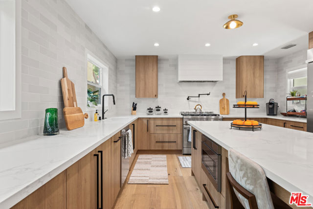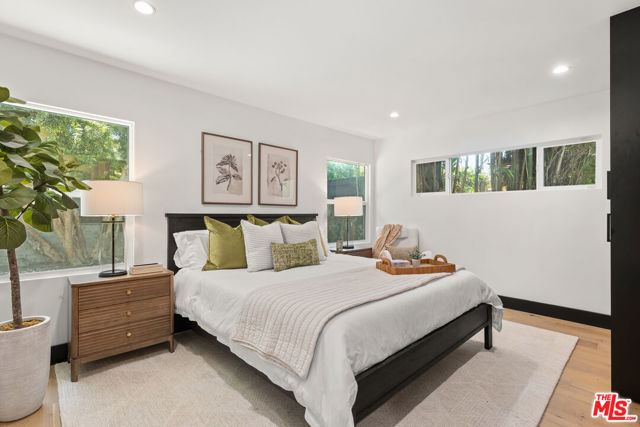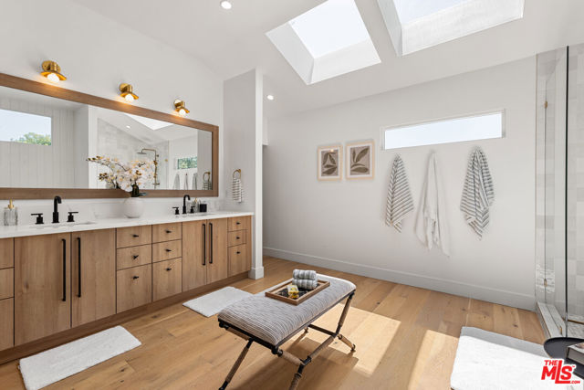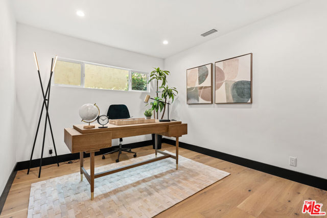 What a great house. Super clean, totally on-trend design with cool fixtures, tiles and custom cabinetry, this 3 bedroom house is set deep off the street on a quiet dead-end street close to a huge park. What an absolutely perfect location - quickly get to all of Studio City's hip restaurants and shopping, as well as the trendiest clubs in Hollywood and downtown LA. The open floor plan kitchen is ideal for hosting sophisticated parties. Everyone will gather in the kitchen and then migrate to the lovely dining room. The soaring high ceiling and expansive disappearing wall of glass that opens to the private backyard continues the setting for that chill vibe. Generous wall space offers an excellent opportunity for impressive personal creative decorating or art collection. The white oak floors create a warm, modern aesthetic. It's a very sexy primary suite with gorgeous bathroom. You'll love the ample natural light. The bathroom suite feels better than a penthouse suite. The entire package rocks a large walk-in closet, soaking tub, glass-enclosed shower, double vanity, beautiful custom cabinetry, and oversized skylights.The main level rooms set up well for home office, creative space, gym, or even roommates. This is a superb and smart investment for a single-family home lifestyle rather than any nearby condos.