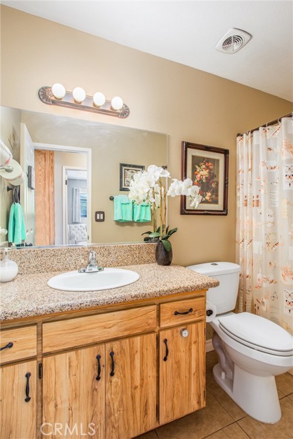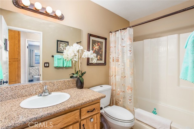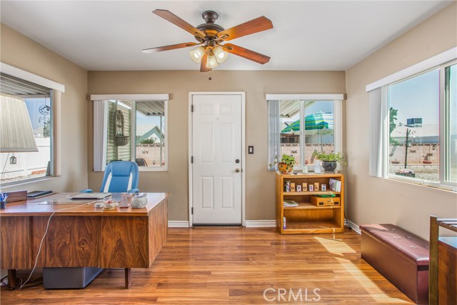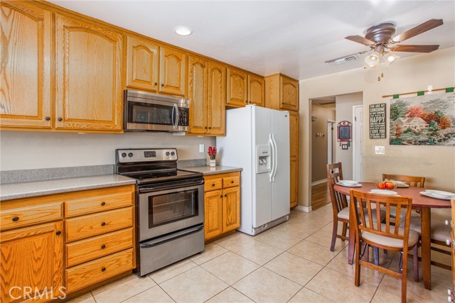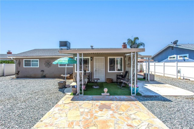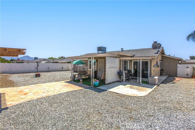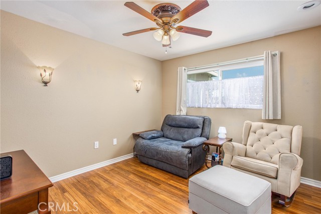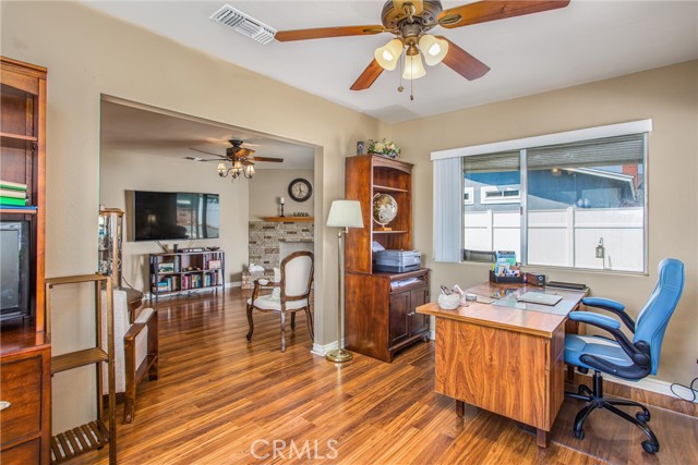 Located in the Sun City Civic Association, a 55+ active adult community, this single-story home offers a functional layout with thoughtful upgrades. Inside, the spacious kitchen sits at the front of the home and features neutral tile flooring, Corian countertops, a breakfast nook, a built-in pantry with pull-out drawers, and stainless steel appliances include a stove, microwave, and dishwasher. The family room is at the rear of the home and includes a ceiling fan, raised hearth flagstone fireplace with an electric insert, and nearby sliding glass doors that lead to the covered patio and backyard. Adjacent to the family room is a bonus room that’s currently used as an office, also with access to the rear patio. Neutral paint and laminate wood flooring run throughout the main living areas, and the thoughtful layout allows for plenty of natural light. There are three bedrooms down the hall including a spacious primary suite with a ceiling fan, recessed lighting, and an en-suite bathroom offering Corian counters and a walk-in shower. The two additional bedrooms also feature updated ceiling fans and share a nearby full bathroom also with a Corian vanity and a shower/tub combo. Additional features include a whole house water purification system, radiant heat barrier in the attic, whole house surge protector, air purifier, and a whole house fan. The roof and HVAC system were both replaced approximately five years ago, providing peace of mind and improved energy efficiency. The front and rear yards are both landscaped for low maintenance and water efficiency, with the backyard featuring a covered patio and sitting area. The clean epoxy flooring two-car garage provides extra storage space, laundry hookups, and the large side yard offers the potential for RV or golf cart parking. As part of the Sun City Civic Association, homeowners enjoy access to a wide range of community amenities including indoor shuffleboard courts, tournament horseshoe pits, a fitness center, two swimming pools, spa, lawn bowling, and a full calendar of clubs and social events. This home offers the ease of single-level living in a vibrant 55+ community designed for an active, social lifestyle, with the added convenience of nearby shopping and easy freeway access.