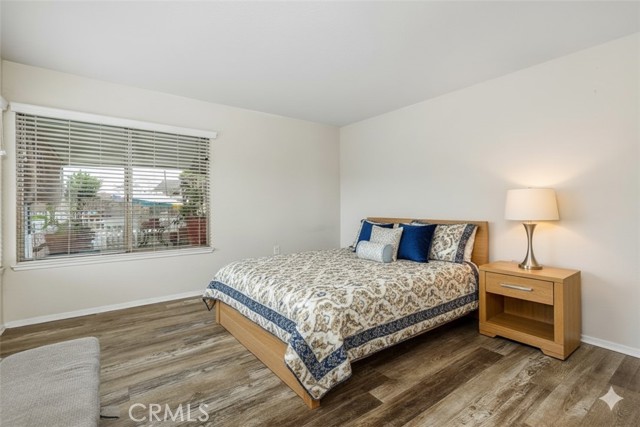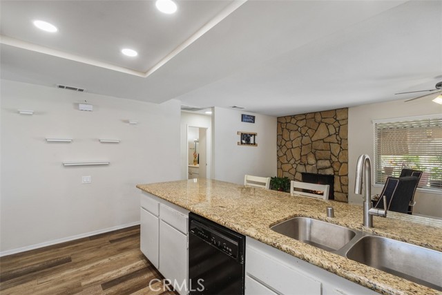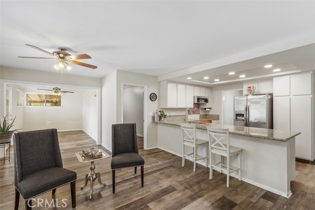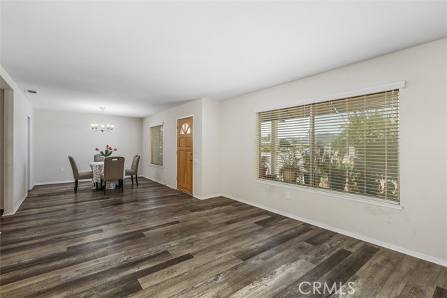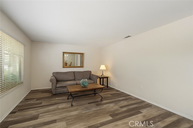 New Improved Price!! Beautiful POOL Home in a 55+ Senior Living Community! Discover the perfect balance of relaxation and recreation in this inviting senior community home. The expansive backyard is ideal for entertaining, complete with a sparkling newer salt water pool only 4 years old, featuring a slide, two covered patios for shade, and low maintenance artificial turf bordered by a block wall for privacy. Inside, the layout is designed with gatherings in mind, and INTERIOR FRESHLY PAINTED! A formal dining room and living room with newer neutral-toned laminate flooring. The cozy family room, with a brick fireplace, creates a warm retreat. The kitchen offers plenty of counter space with granite counter tops, a roomy breakfast bar, and stainless steel appliances. The primary bedroom provides peaceful views of the landscaped yard, mirrored closet doors, and plenty of natural light. The secondary bedroom is generously sized and conveniently located near the guest bath. With a newer roof, HVAC system only 2 years old, and excellent curb appeal, this home is move-in ready. Residents enjoy easy access to freeways, shopping, dining, and local churches, as well as community amenities including pickleball, fitness rooms, senior activities, and an association pool. Make an offer!