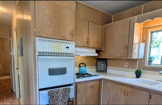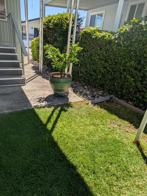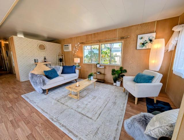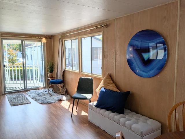 Welcome home to this charming 1-bedroom, 1 bath home located in the most desirable Park in Sunnyvale. Showing pride of ownership, this light and bright home has now been passed down through 2 generations. Cozy, yet open feeling home offers a welcoming and functional kitchen, perfect for preparing meals. Living and dining room are a combined l-shape, allowing for ease of movement and entertaining guests. Step inside to find new LVP flooring adding to the home's warm atmosphere. The living area Is open and perfect for entertaining guests. The laundry room for the complex is in the same row and is easily accessible. Backyard feature side deck with stairs to green grass, camellia bush which is over 30 years old, lemon tree, & more. Brand new laminate flooring throughout with the exception of master bedroom closet. New paint on ceilings, bathroom was fairly recently upgraded to have stall shower with low lip for easy entry & high quality wood look lvp flooring. all inspections are in. All questions are welcome. To qualify to purchase with Park management, Buyer must make 2.5 times space rent and have good credit history.