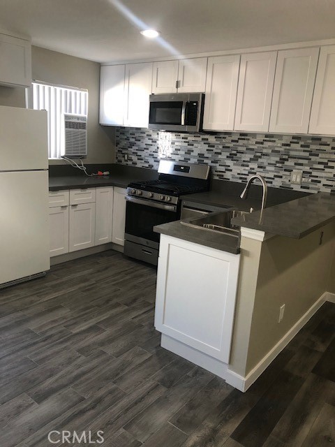 Great condition recently remodeled unit in a fantastic location! Light bright and spacious with laminate floors, neutral paints colors to compliment any decor! Good size living room opens to kitchen and dining area for a desired open concept feel and features beautiful floor, recessed lights, and a good size balcony. The remodeled kitchen has plenty of cabinet space, tiled backsplash, and generous counter tops. Bedroom and bathroom are conveniently located right off the living space and are also a very good size with lots of closet space, plenty of light, new vanity and bathtub. This unit is located in a quiet, green, and secure complex with pool and barbeque. In addition, all the best shopping and entertainment, public transportation and Ventura Blvd. are only short distance walk or drive!