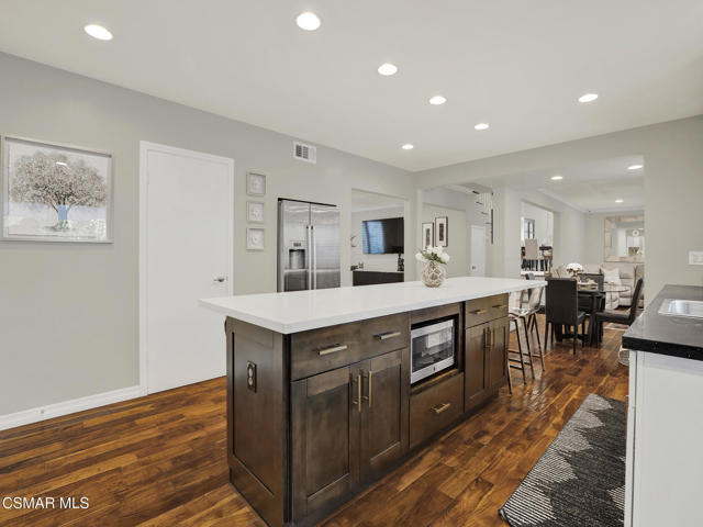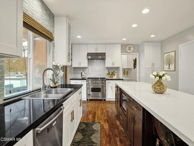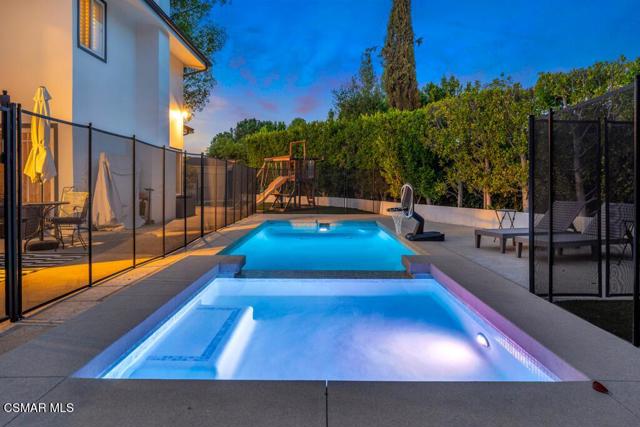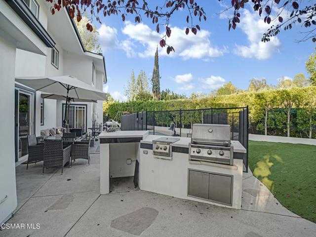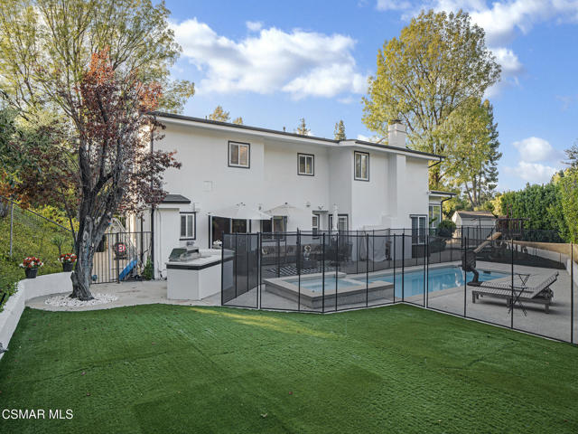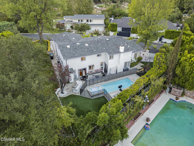 Exquisite Remodeled Tarzana Residence - Perfectly positioned on a tranquil cul-de-sac nestled between the lush fairways of Braemar Country Club, this stunning 5-bedroom, 5.5-bath home embodies the very best of refined luxury, modern design, and effortless Southern California living. Completely reimagined with exceptional craftsmanship and the finest designer finishes, every detail has been thoughtfully curated to balance sophistication with comfort--creating a residence as inviting as it is impressive. Ideal for both grand-scale entertaining and intimate gatherings, the home is framed by manicured landscaping and a serene natural backdrop that set the stage for timeless elegance. Framed by lush, manicured landscaping and a serene natural backdrop, this beautiful residence welcomes you with timeless sophistication from the moment you arrive. Beyond the double-door entry, a grand foyer introduces an interior defined by scale and grace. High ceilings, elegant crown molding, neutral palettes, and rich wood flooring create a harmonious flow through the formal living and dining areas--ideal for hosting memorable dinner parties or festive celebrations. A chic powder room completes this level.Step down into the heart of the home where the entertainer's kitchen takes center stage, showcasing top-of-the-line stainless steel appliances, bespoke cabinetry, striking quartz countertops, and an expansive center island with seating for many. The adjoining breakfast nook, cozy den, and inviting family room--anchored by a fireplace--offer a perfect blend of comfort and sophistication.A versatile main-level bedroom with an ensuite bath provides the flexibility of a private guest suite or a stylish home office. A well-appointed laundry room with abundant storage and direct access to the attached two-car garage add everyday convenience.Upstairs, the vaulted-ceiling primary suite serves as a tranquil retreat, complete with a generous walk-in closet and a spa-inspired bath featuring dual vanities, a soaking tub, and a separate shower. Two additional secondary bedrooms--each with walk-in closets--share access to a beautifully updated hall bath with dual sinks, while one of these bedrooms enjoys the added benefit of a private ensuite bath. An elegant in-law suite, located on the same level as the primary and secondary bedrooms, provides additional comfort and privacy with its own full bath.Glass sliders open to a secluded backyard oasis designed for year-round enjoyment. Enjoy a resort-style pool and spa surrounded by mature greenery, an outdoor BBQ area, artificial turf play space, swing set, and multiple lounge and dining zones--each perfect for relaxing or entertaining beneath the California sky. A pool safety fence and storage shed complete this thoughtfully designed outdoor haven. This remarkable Tarzana residence delivers the quintessential Southern California lifestyle--elevated in every way.