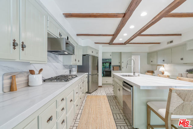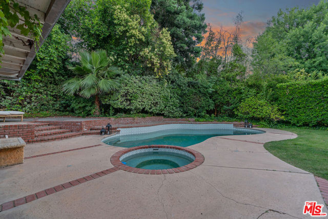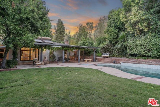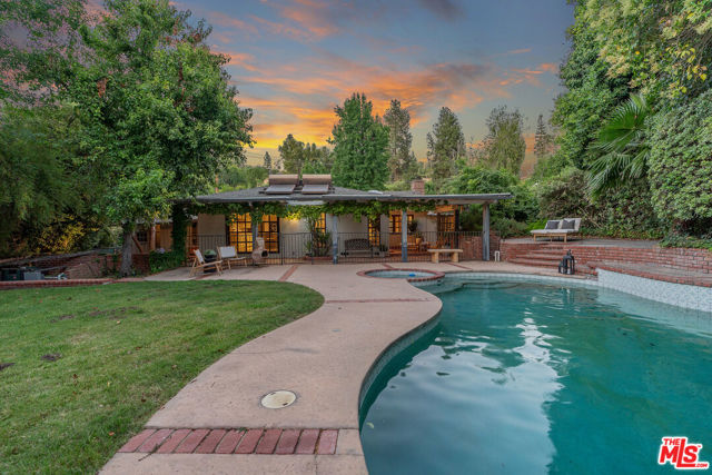 Thoughtfully Designed, Tucked Away, Truly a Tarzana paradise! Welcome to 4835 Corbin Avenue! This beautiful ranch style home is located in a prime South of the boulevard Tarzana location. Recently renovated including HVAC, Pool, Kitchen, Primary Bath, Electrical, Flooring, Insulation and more! This private home offers five large bedrooms, three bathrooms and plenty of living space. As you enter the home, you will be greeted by a large living room with beautiful exposed beam ceilings, skylight and walls of windows. The large kitchen and dining room offer plenty of space for gatherings and entertaining with multiple sliding doors overlooking the picturesque back yard. Step outside to your serene backyard retreat with a large pool and spa, plenty of patio space, and mature privacy hedges and trees. This home features a dual gated circular driveway perfect for added convenience and easy access. Enjoy all that this highly sought after area has to offer including famous hiking trails, parks and more!