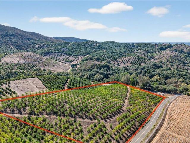 Beautiful corner, paved frontage 9.68 acres (421,660 sqft) parcel with professionally manage lemon orchard. Stunning panoramic views. Trees are healthy & producing. Amazing, sprawling multi million dollar estates around the area with orchards. Water meter, electric & telephone, cable connection is available.