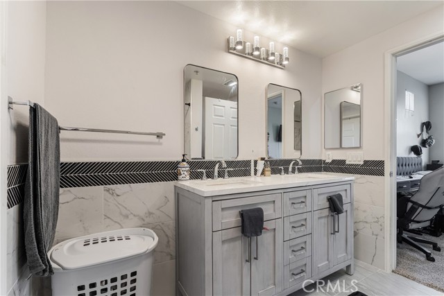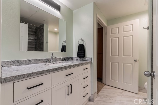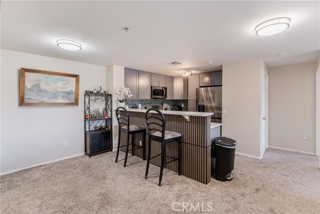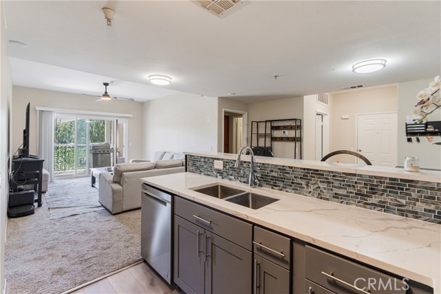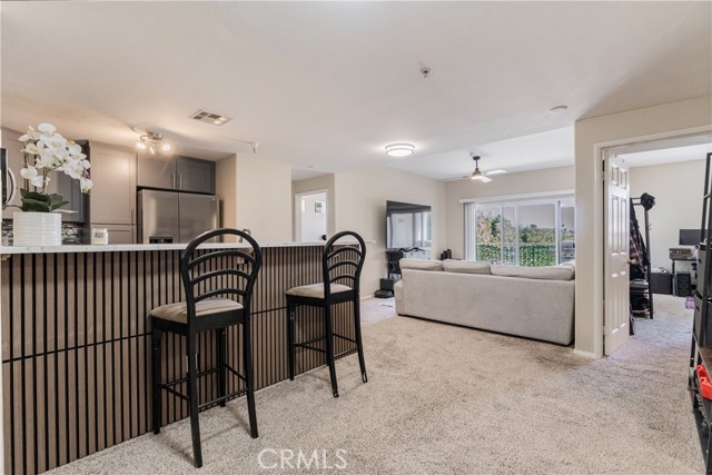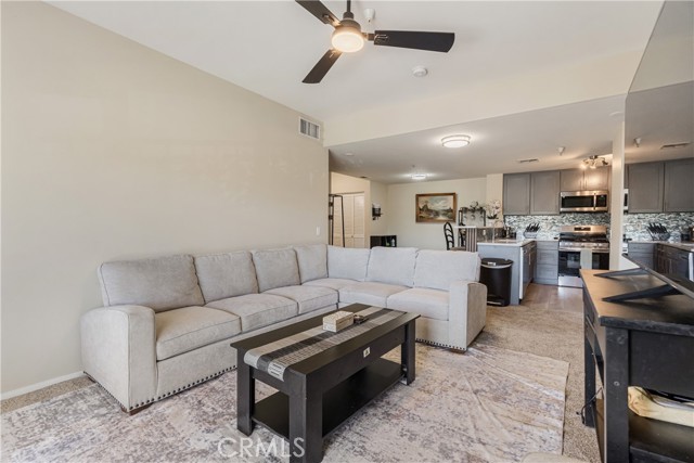 Welcome to this beautifully remodeled 2 bedroom, 2 bath condo located on the desirable second floor with no neighbors above. This light-filled home features an open layout, ceiling fans throughout, and the convenience of indoor laundry. The kitchen is a showstopper with brand-new soft-close cabinets, quartz counters, luxury vinyl plank flooring, and all-new stainless steel appliances. Both bathrooms have been tastefully remodeled from top to bottom, offering a clean, modern feel. Enjoy seamless indoor-outdoor living with a private patio accessible from the living room and both bedrooms—perfect for morning coffee or evening relaxation. Set within a gated community, residents have access to outstanding amenities including a swimming pool, spa, sauna, racquetball courts, fitness center, playgrounds, and walking trails. Conveniently located near freeways, shopping, and restaurants, this home blends comfort, style, and convenience. Don’t miss the opportunity to own this move-in ready condo!