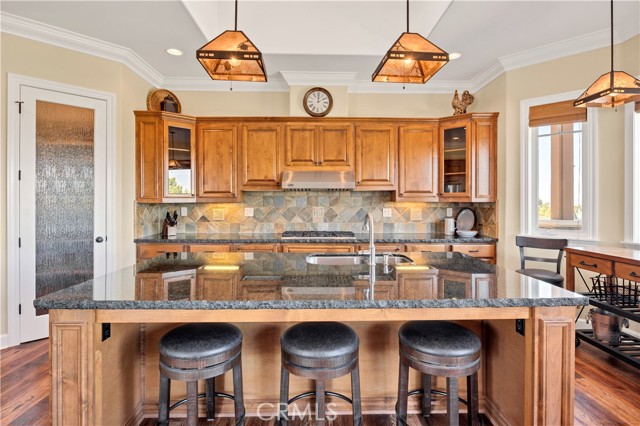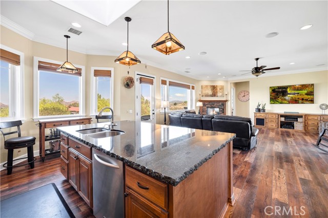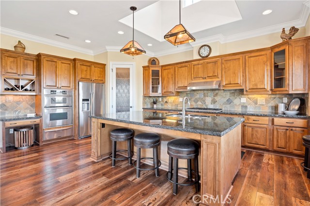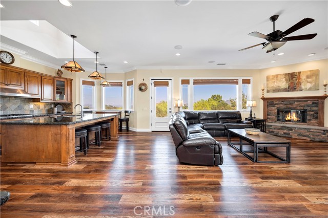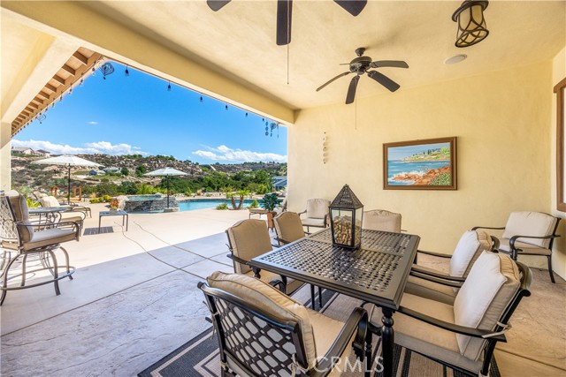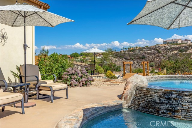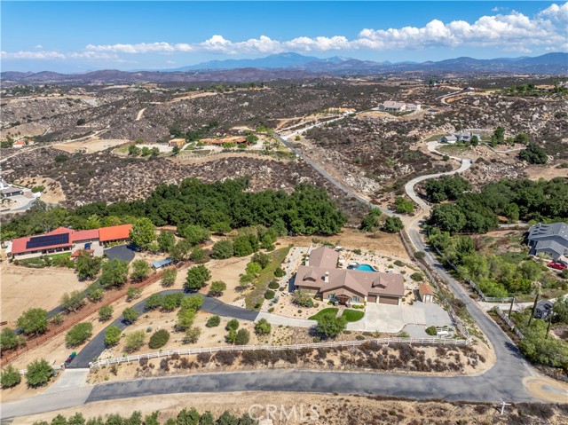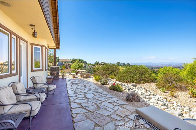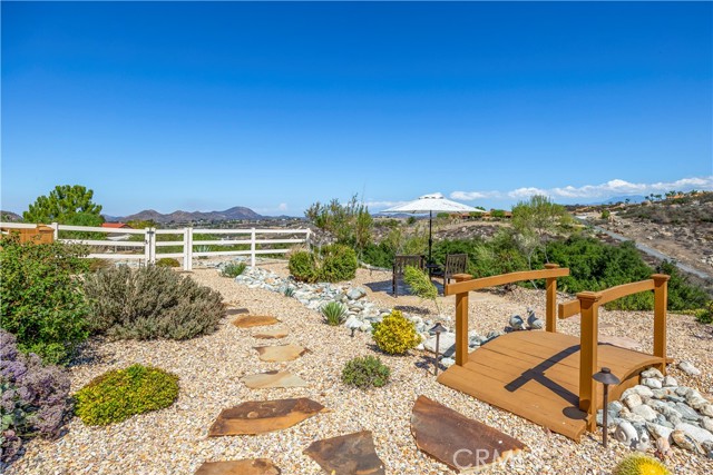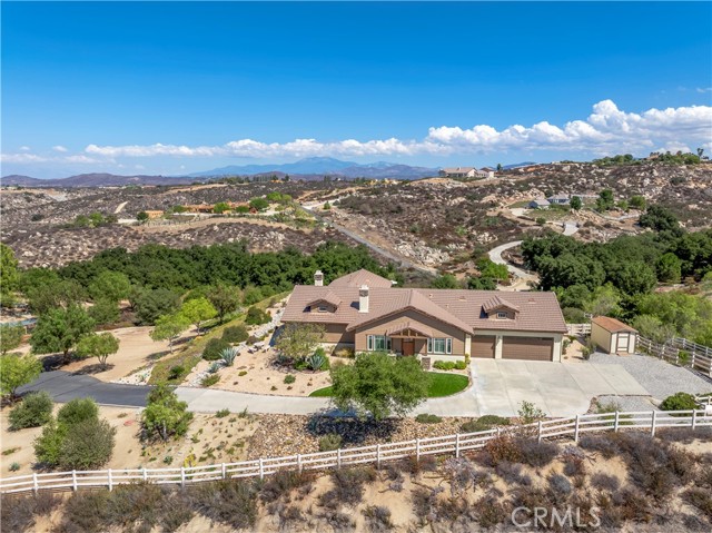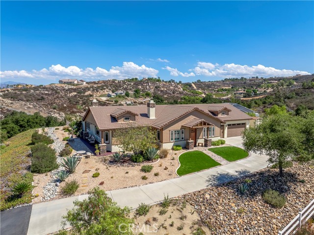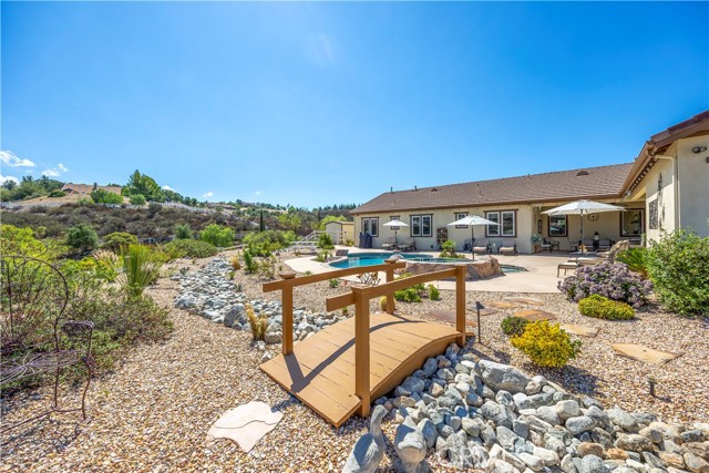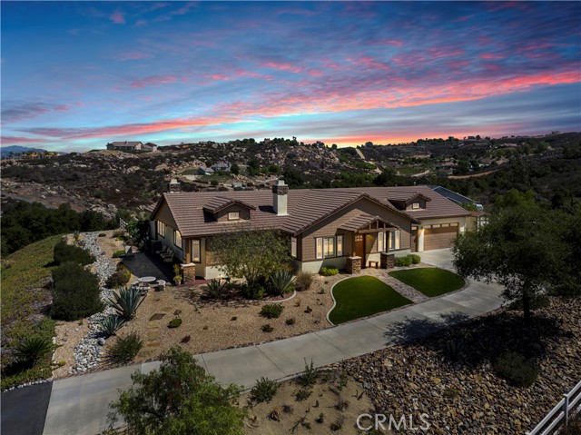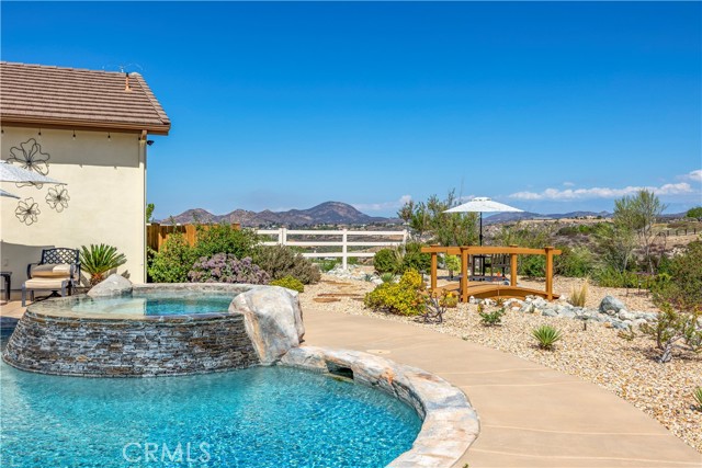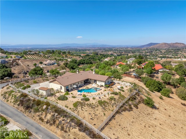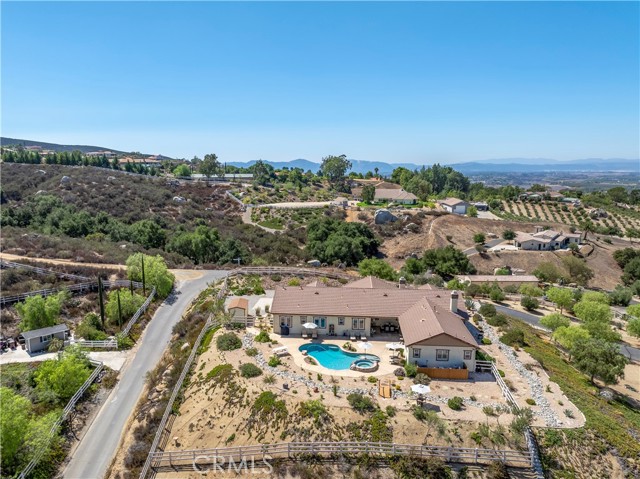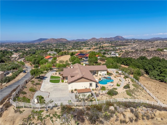 Welcome to your private Wine Country retreat! Nestled on nearly 5 acres of usable land, this single-story estate captures unparalleled 360-degree views of Temecula’s rolling vineyards and stunning sunsets. Designed for both comfort and entertaining, this residence offers 4 bedrooms, 4.5 bathrooms, plus a dedicated office and private automatic gated entrance—the perfect blend of elegance and functionality. Inside, you’ll find a thoughtful floor plan that balances style and space. The home features a formal living and dining room with a cozy fireplace, perfect for intimate gatherings or holiday celebrations. The expansive great room seamlessly opens to the chef’s kitchen, creating the ultimate space for entertaining. The kitchen boasts stainless steel appliances, granite countertops, and ample cabinetry—a dream for any culinary enthusiast. Additional upgrades include surround sound speakers throughout the house and backyard, a whole-house fan, and a water softener, enhancing comfort and convenience. The primary & one additional secondary bedroom has its own full ensuite bathroom, bedrooms three & four both have a shared ensuite bathroom ensuring privacy for family and guests, while the office provides a quiet, versatile space for remote work or creative pursuits. There is also a fourth full bathroom in the hallway as well as additional half bath by the Great Room. Step outside to embrace the true California lifestyle. Enjoy the sparkling pool and spa, or relax on expansive patios surrounded by professional drought-resistant landscaping. At the bottom of the property, a seasonal creek meanders through a natural oak grove, adding serenity and character to the landscape. With nearly 5 acres of mostly usable land and the potential for dual access, the possibilities are endless—plant your own vineyard, design equestrian facilities, or simply soak in the wide-open space. Recent updates, including a new HVAC system, tankless water heater, and stylish wood laminate flooring, provide modern efficiency and peace of mind. A spacious 3-car garage adds convenience and functionality. All this, just minutes from Temecula’s world-class wineries, dining, and shopping, yet offering unmatched serenity. This is Wine Country living at its finest.