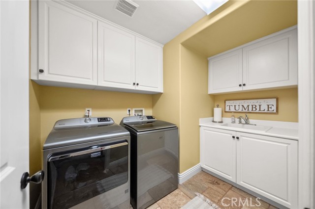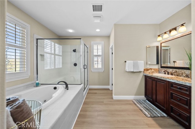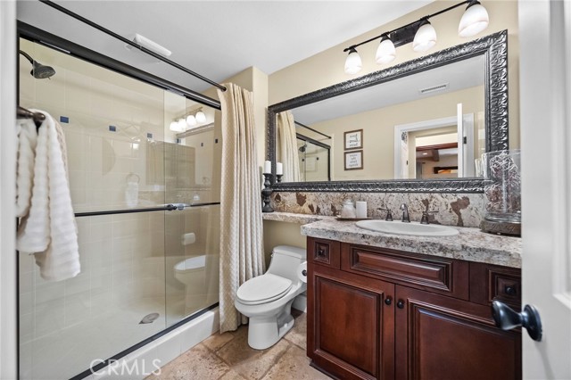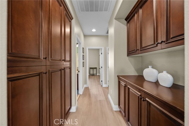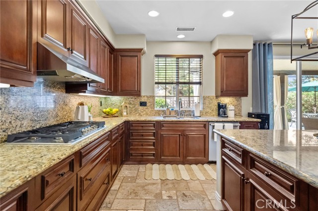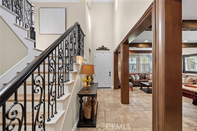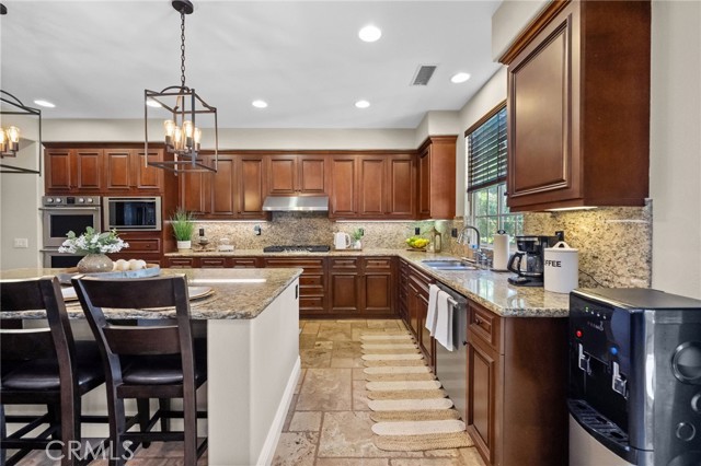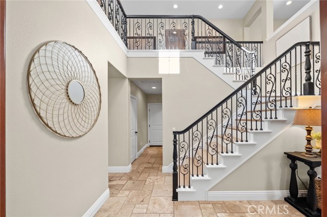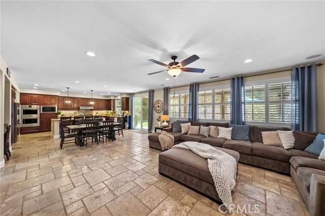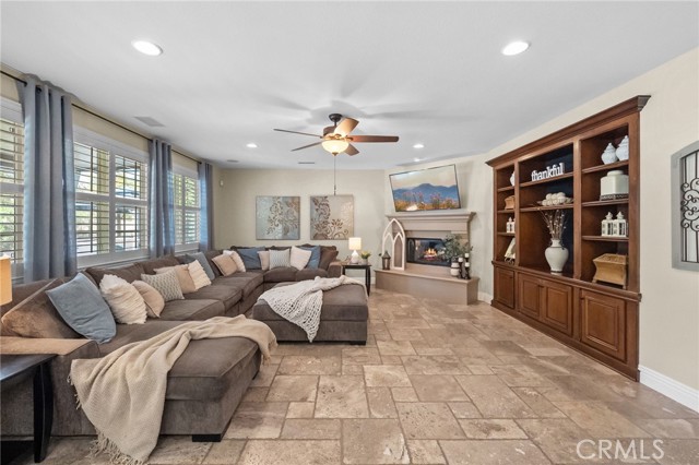 Welcome to 46331 Hunter Trail, a beautifully maintained former model home in the highly sought after Wolf Creek community of South Temecula. This spacious 5-bedroom, 3-bath, 3,506 sq ft residence offers refined finishes with sophisticated comfort. Step inside to a grand entry featuring vaulted ceilings, tumbled travertine tile flooring throughout the main living areas, and stylish beams setting a tone of timeless elegance. This open-concept layout includes a formal living room and formal dining room that flows right into a fantastic family room centered around a beautiful gas fireplace, surrounded by wood shutters, custom built-ins, and surround-sound wiring. This gourmet kitchen features granite countertops and backsplash, stainless steel appliances including double oven and gas cooktop, an oversized center island with bar seating, and abundant cabinet space—perfect for gatherings and everyday living. Upstairs, enjoy wood-look luxury vinyl plank (LVP) flooring throughout, leading to a spacious primary suite with his and hers walk-in closets, dual vanities, a jetted tub, and a separate shower. Four additional bedrooms provide ample space for family, guests, including a home office. Step outside to your private backyard retreat featuring artificial turf, mature landscaping, and a covered above-ground spa—the perfect spot to relax and enjoy Temecula’s beautiful evenings. The covered patio provides additional space for outdoor dining and entertaining, all with low-maintenance appeal. Additional highlights include a downstairs bedroom and full bath, custom wrought-iron staircase, and a three-car garage. Located within the award-winning Temecula school district, this home is just minutes from Old Town Temecula, Pechanga Resort, local parks, several golf courses, and Temecula Wine Country. This immaculate former model home offers the perfect balance of comfort, style, and everyday livability in one of Temecula’s premier neighborhoods. All furniture is negotiable in the offer.