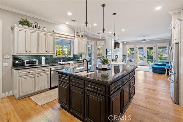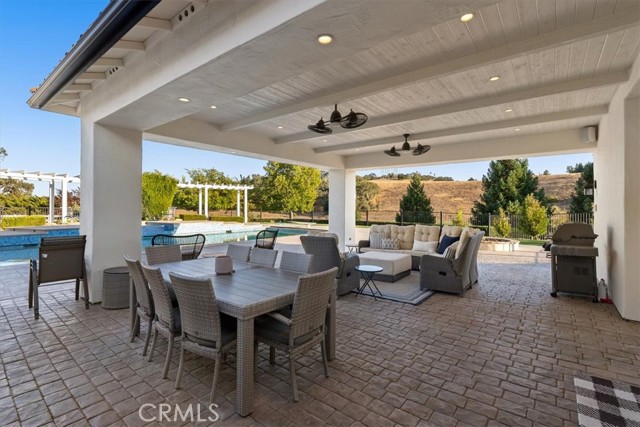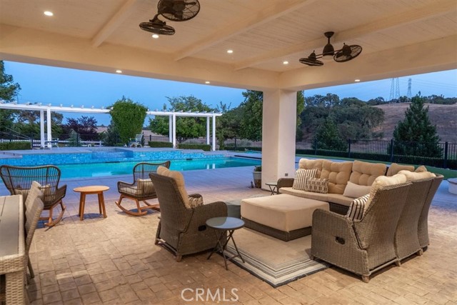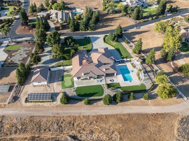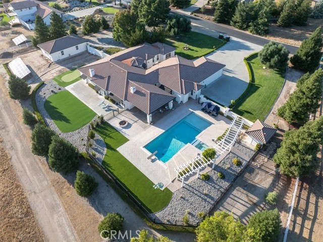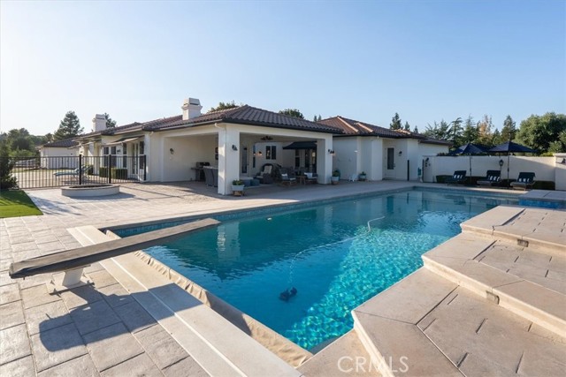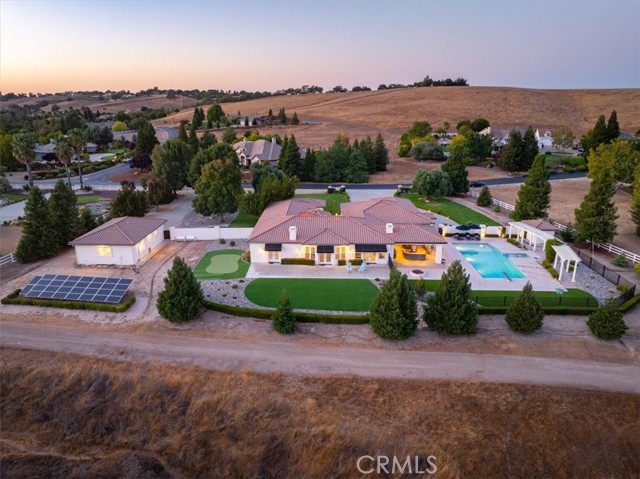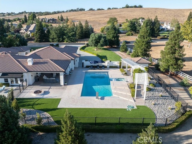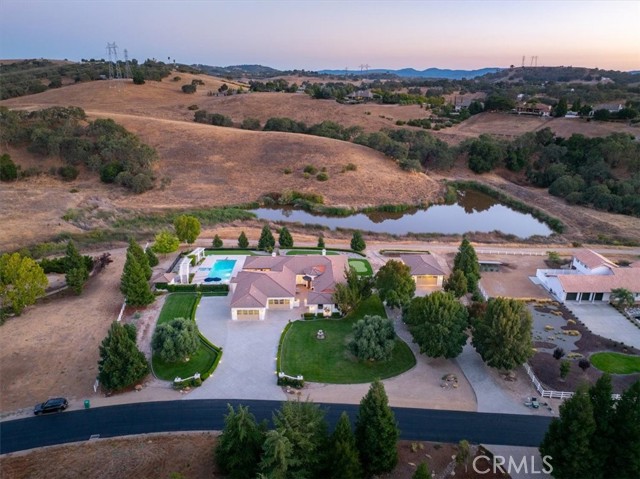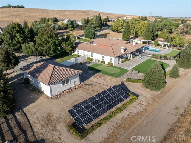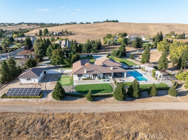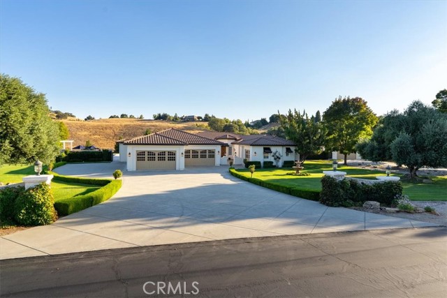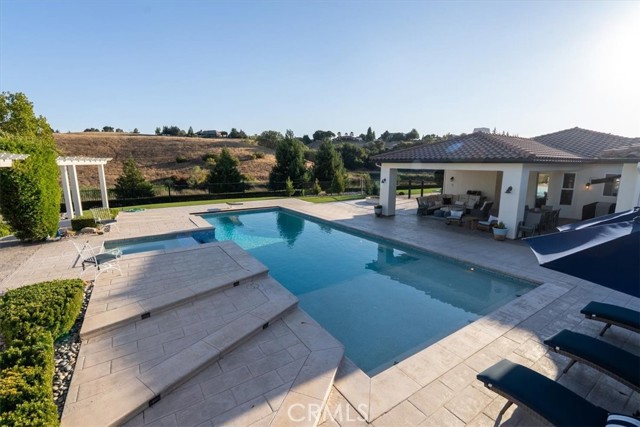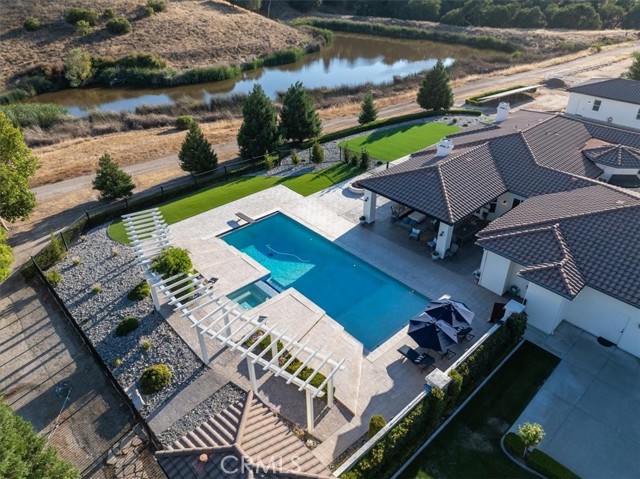 Experience luxury living in the highly desirable gated community of Spanish Lakes with this well-appointed Templeton estate. Set on 1.47 acres, the 4,237± sq. ft. residence combines privacy, sophistication, and a true indoor/outdoor lifestyle. The thoughtfully designed floor plan includes 4 bedrooms, 4.5 bathrooms, a dedicated office, and a spacious bonus/game room with a built-in bar perfect for the sports enthusiast or entertainer. The heart of the home is the expansive kitchen, showcasing a center island with prep sink and seating, stainless steel appliances, and walk-in pantry. The open layout flows seamlessly into the living room, where a fireplace and French doors extend onto the back patio. The primary suite is a private retreat with its own fireplace, patio access, and a spa-inspired bath featuring a soaking tub, dual vanities, a tiled shower, and generous walk-in closet. Additional comforts include a dedicated office with patio access, a laundry room, and a four-car garage. Outdoor living is elevated with a sparkling pool and spa, covered patio, outdoor firepit, and even a putting green surrounded by low-maintenance landscaping. The front courtyard creates a warm welcome, while solar power provides efficiency and sustainability. Meticulously maintained and designed to capture the essence of Central Coast living, this Spanish Lakes property is the ideal blend of luxury, functionality, and leisure.
