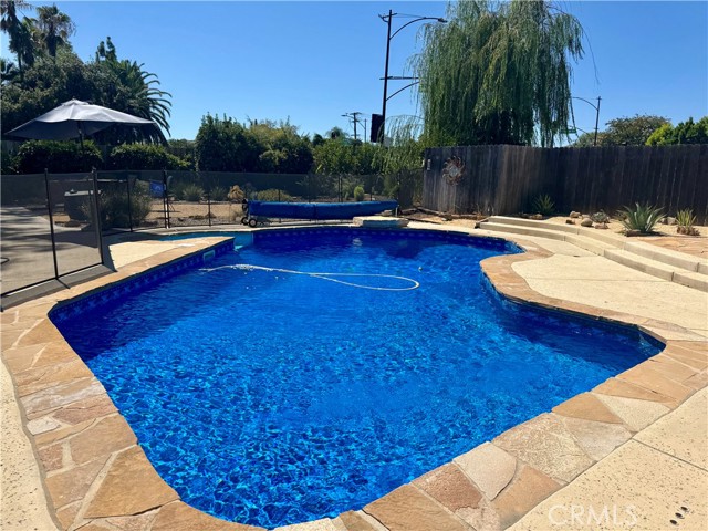 Welcome to this oasis in the heart of Thousand Oaks. This 4-bedroom, 2.5-bathroom home invites you to experience comfort and style. Step into your backyard paradise, with a sparkling pool and lush, drought-tolerant landscaping, stunning and sustainable, while also offering RV access for your adventure toys. The kitchen, dazzles with quartz countertops and a subway tile backsplash, a perfect setting for culinary exploration. Downstairs large format tile flooring flows through the space, heading upstairs is dark engineered hardwood flooring. The bathrooms are remodeled with stylish tiling. Solar panels add energy efficiency that promise to keep your electrical bills low. Whether enjoying the cool waters of the recently updated pool or relaxing in the air conditioning, it is comfortable. The living room fireplace is purely decorative, adding a cozy charm to the ambiance.
