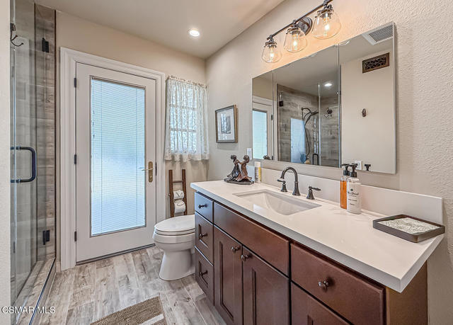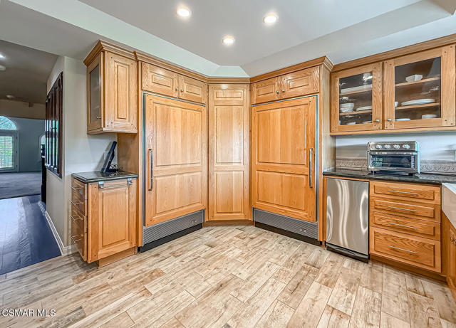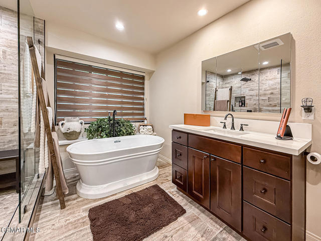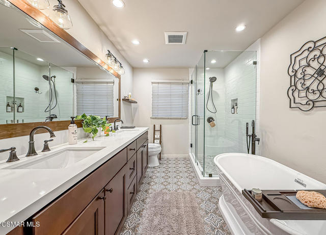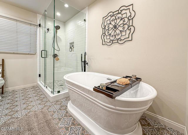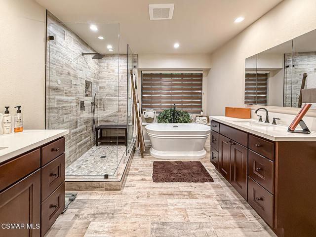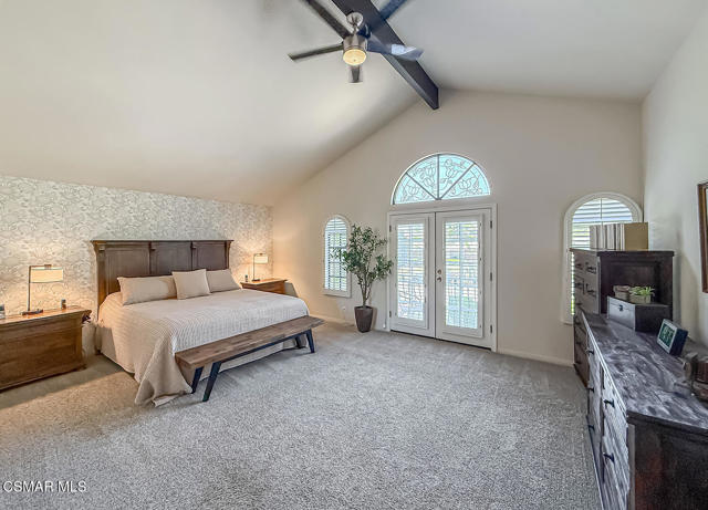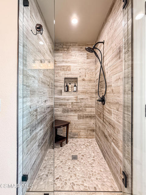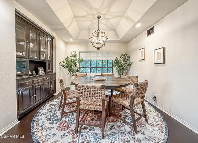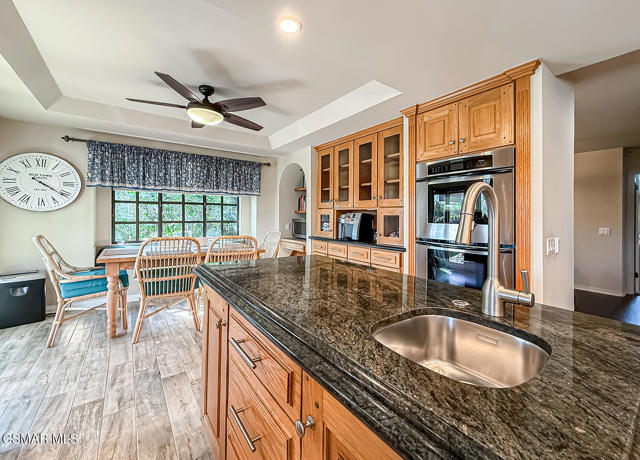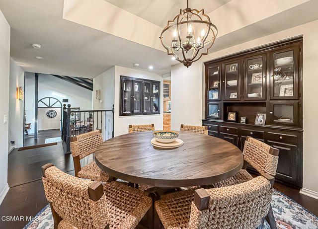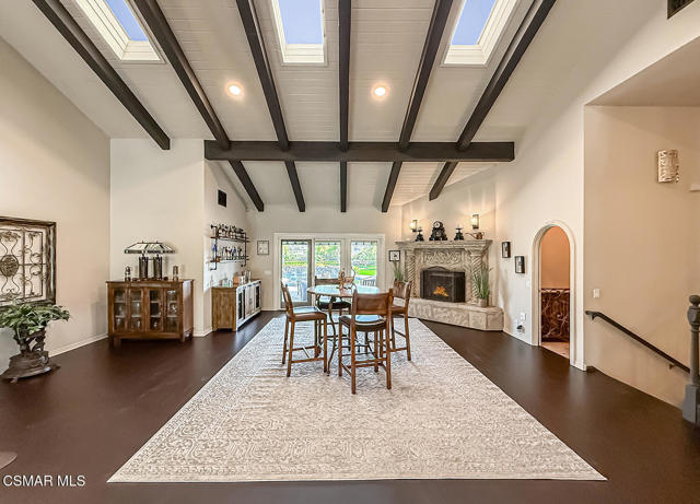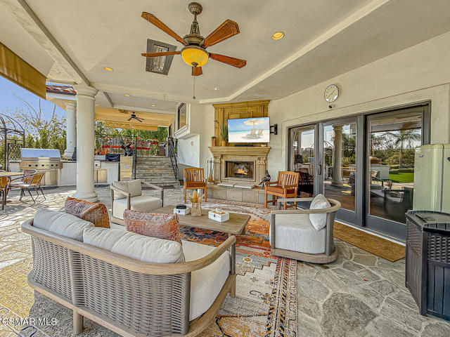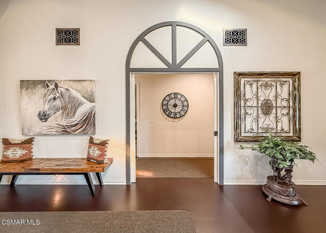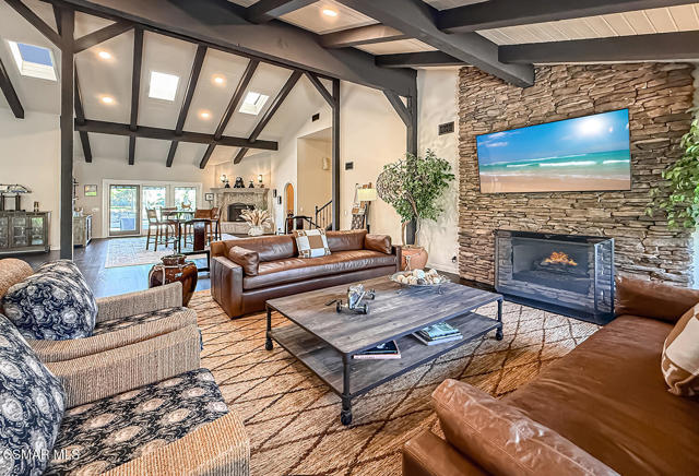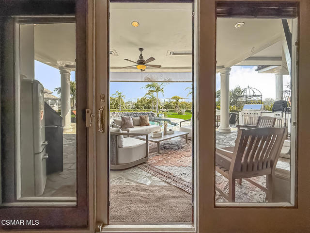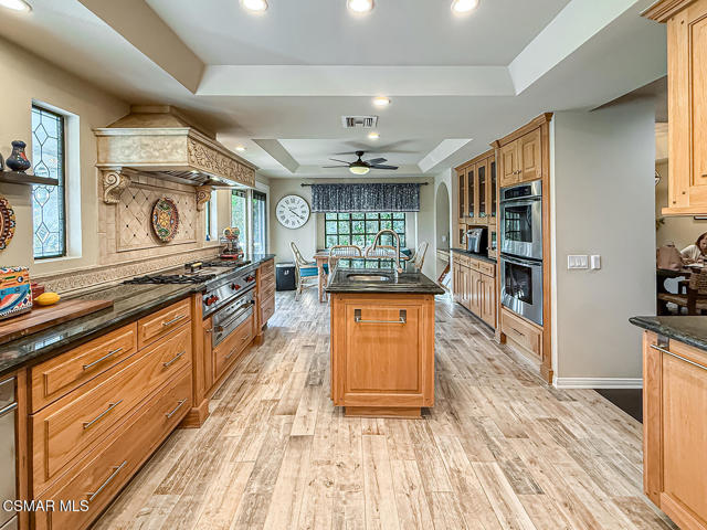 LOOK AT THIS ENTERTAINER'S DREAM OF A YARD!!Nestled in the exclusive neighborhood of Lynn Ranch, this home offers the tranquility of a cul-de-sac location in addition to the dramatic surroundings of serene canyon views and a running stream. Located on an approx. 25,000 sq. ft. lot and a house which is about 3,800 sq. ft. ~It is set back from the street accessed by an automatic dual gate and circular driveway. Not only is there a deep 2 car garage, there is enough parking for 5+ cars. This property combines rustic elegance with wood beams and stone fireplaces with luxurious amenities: secret wine cellar, saltwater pool/spa and a gourmet kitchen.Once you enter through the massive iron doors you look up at a beautiful 2 story vaulted ceiling. The gourmet kitchen with panoramic views ~ is well equipped with high end appliances (Sub-Zero, 2 ovens, glass front cabinets, an island and a deep custom sink). This home also includes modern green-features: a SOLAR SYSTEM owned by the seller (no lease) with a battery backup system-4 batteries included- All 3 baths have been remodeled~ the ensuite bath to the primary bedroom is exquisite! (Much like your own spa). The tile throughout in all 3 baths is gorgeous. Outdoor entertaining is absolutely a standout for you and any parties. There is a saltwater pool/spa, an upper terrace for dining and a lower patio complete with stainless steel built ins. To complete the dining experience there is a pizza oven! This lot is beautifully landscaped featuring lush gardens, walkways, a greenhouse, fabulous gazebo and views out to the canyon and enchanting stream below. The property backs onto the Arroyo Canyon Natural Area. The views are expansive and the sunsets dramatic! When you combine the large view lot, high end finishes, and the solar system you have a truly distinctive upscale property in Thousand Oaks-- and one you should come and preview! You will never want to leave!