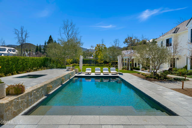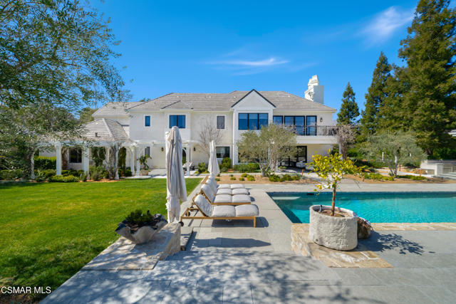 This stunningly reimagined estate seamlessly blends classic sophistication with fresh, contemporary design, creating a truly unique masterpiece--unlike anything else in Sherwood. A rare opportunity to own one of the most exquisite and impeccably crafted properties in prestigious Sherwood Country Club, set on a premier flat acre with breathtaking lake and mountain views. Spanning approximately 8,383 sq. ft., this home is designed for luxury and comfort, featuring an incredible floor plan with a unique layout of six en-suite bedrooms, including two conveniently located downstairs, and seven baths. The gourmet kitchen flows seamlessly into a spacious family room, complemented by a library/office, a formal living room, and a spectacular dining room that exudes elevated sophistication and modern flair. Upstairs, a secondary family/media room offers the perfect space for entertainment. The sumptuous primary suite is a true retreat, featuring a cozy fireplace, a private balcony with lake views, and a salon-style shampoo station in the luxurious primary bath. Pocket doors open to the ultimate outdoor oasis, featuring covered loggias, a state-of-the-art outdoor living room with an entertainment center and fireplace, an outdoor kitchen & BBQ, a sparkling pool & spa, and batting cage. In addition, the backyard showcases raised planters and a serene lavender haven, offering a tranquil and lush environment. This is California living at its finest, offering panoramic views of Sherwood's stunning landscape in an estate remodeled to absolute perfection!