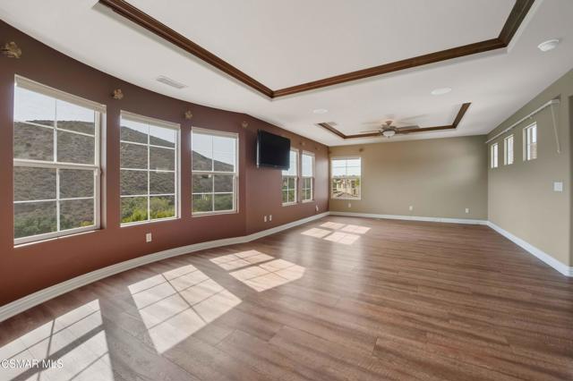 Luxury living behind the gates of Woodridge Estates! This freshly painted, light, bright, and airy 5-bed, 5-bath home offers over 4,100 sq ft of elegant living space on a fully landscaped lot with panoramic mountain views. The chef's kitchen boasts a large island, bar seating, and upgraded Viking appliances. Spacious living and family rooms with soaring ceilings, new custom wine cellar, and main-level bedroom ideal for guests or office. The luxurious primary suite features dual closets, soaking tub, walk-in and steam showers. Enjoy a private backyard oasis with a custom fountain and serene views. Includes 3-car garage and access to this premier 24-hour guard-gated community near top-rated schools, trails, and shopping.