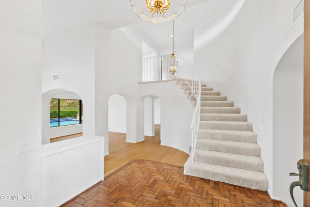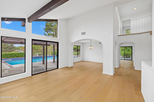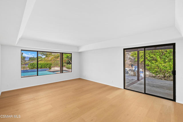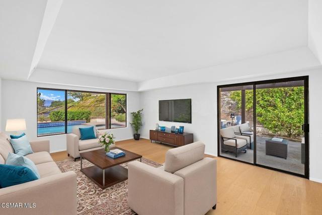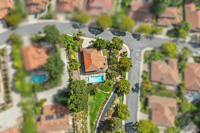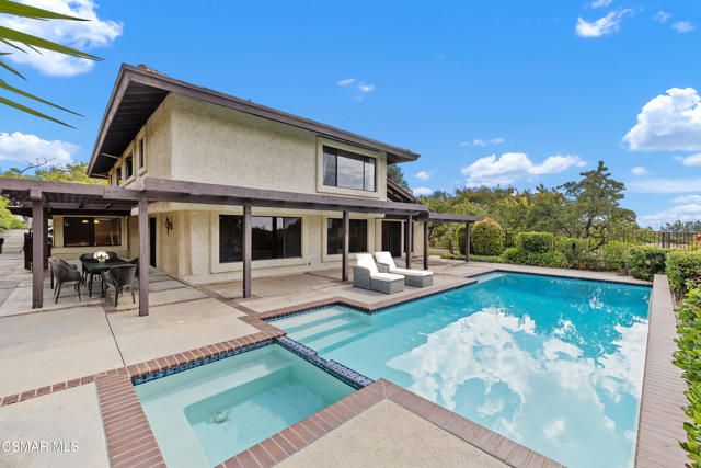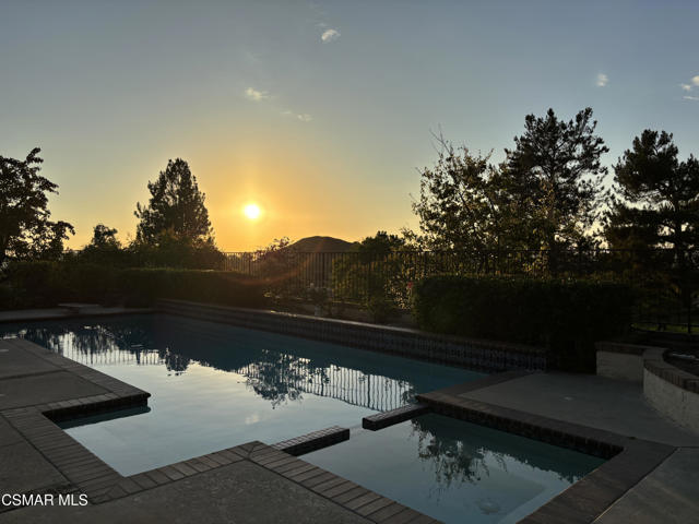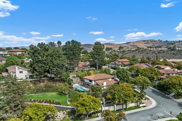 Stunning East Hill View Home! Located in the highly desirable East Hill neighborhood of Thousand Oaks, this expansive 4-bedroom, 3-bath home with a large bonus room offers exceptional privacy, breathtaking views, pool and spa, and the largest floorplan in the community. Situated on a spacious corner lot with a gated entry, this property combines elegance, space, and functionality.Upon entry, you are welcomed by soaring ceilings and an abundance of natural light streaming through floor-to-ceiling windows. The open-concept layout includes a generous living and dining area that overlooks the sparkling pool and panoramic mountain views--ideal for entertaining or relaxing in a serene setting. The gourmet kitchen features granite countertops, a built-in oven, convection microwave, Thermador stovetop with warming lights, and a sunny breakfast area. Adjacent is the spacious family room that flows effortlessly for daily living.Upstairs, the primary suite boasts unobstructed views, an ensuite bath, and a walk-in closet with convenient attic storage. Two additional upstairs bedrooms share the floor with a versatile oversized bonus room--perfect for conversion into two extra bedrooms, a home theater, or even an additional primary suite. Downstairs, you will find a 4th bedroom currently used as an office, easily converted back by adding a closet. Additional features include engineered hardwood flooring throughout the main level, separate laundry room, large storage pantry, large storage area under staircase, 3-car garage, and a new pool/spa heater makes this home truly sensational! Watch stunning sunsets from the serene backyard or your private bedroom retreat--this home truly offers it all!The community has paseo paths, picnic and BBQ area. Close to award-winning schools, scenic parks, hiking trails, Sunset Hills Golf and Country Club.