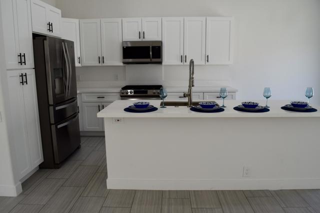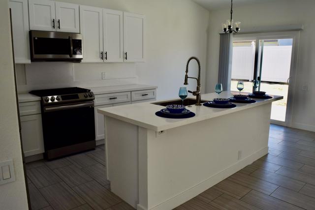 Price just reduces!! A fresh beginning awaits. This One is a client pleaser. More than remodeled, this single story 4-bedroom, 2-bath home has been reimagined with intention. At its heart is a brand new kitchen with quartz counters, stainless steel appliances, and a generous island that invites gathering. The living spaces flow easily, warmed by natural light and anchored by a fireplace that feels like the true center of home. The primary suite becomes a place of rest, where soft light and quiet space invite you to pause and recharge, complete with a walk in closet and a dual vanity bath for everyday comfort. Three additional bedrooms bring flexibility for loved ones, guests, or creative pursuits. Step outside to mountain views rising beyond a private yard framed by new white vinyl fencing and water wise desert landscaping. A home ready for its next story bring your clients and let this house do the talking.