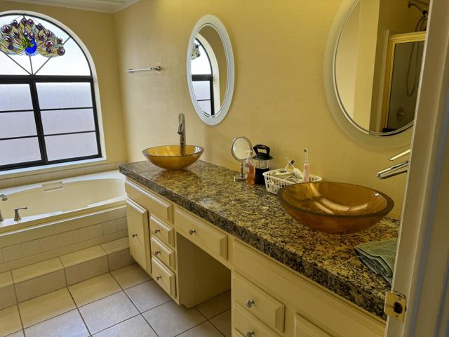 Popular Silvercrest Jasmine model on corner lot with Casita. Welcoming covered patio with a large Hot Tub. Large living room with golf course and mountain views. Dining area adjacent to living room. Both rooms separated from remainder of home. Large, bright kitchen with center island and breakfast bar. Bar is open to family room. Circular kitchen layout with built in oven and range. Lots of storage. Large family room has wood burning fire place and slider access to the covered patio. Guest bedroom and bath off family room with oversize laundry room with spacious cupboards and laundry sink. Master bedroom has two walk-in closets and a slider to the patio. Master bath has separate tub and shower. Great views of mountains from kitchen. Two car garage with attached golf cart garage. Furniture Optional. This home is on a 433A PERMANENT FOUNDATION. Ivey Ranch CC & GC, is a gated, senior community of manufactured homes integrated with a 9 hole golf course, Pro-shop, Driving Range, 4 community pools, 2 community spas, Club House and a Seasonal Restaurant. In Ivey Ranch you own the land.
