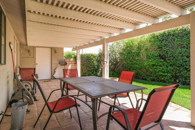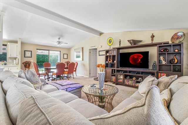 YOU OWN THE LAND!! Home has an amazing fenced private covered patio and grassback yard. Ivey Ranch is a 55 and better community with a 9 hole PGA rated golf course and driving range. There 4 community pools, 2 community spas, clubhouse and tennis courts.This home has an open floor plan - living room dining room and kitchen with 2 bedrooms and 2 baths and a laundry room.Sliding glass door in the dining room takes you to a very private walled grassy back yard with tile patio with overhang for shade.Don't forget the 2 car attached garage.You own the land and the home has foundation and can be financed.House is being sold 'as is' so bring your decorating touch and create your perfect home in the desert.
