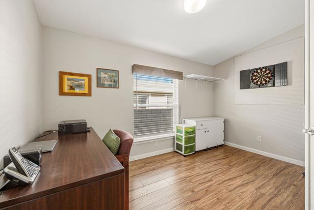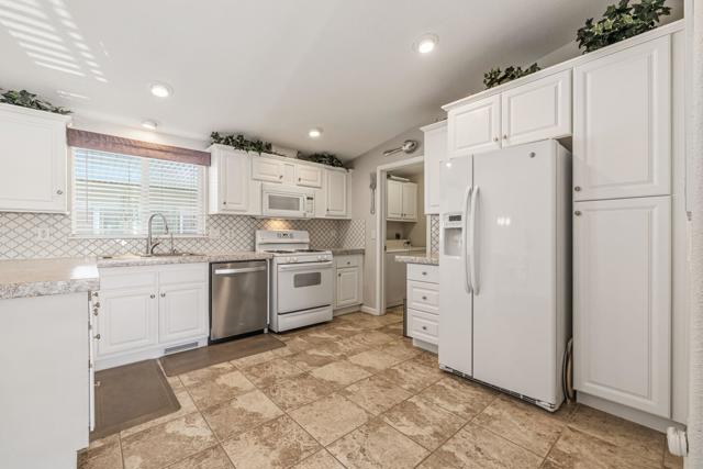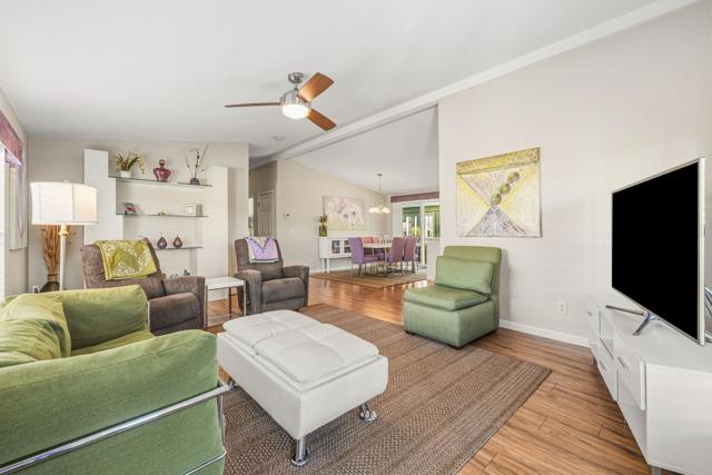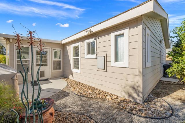 Welcome to Jack Ivey Ranch, a 55+ active adult community featuring a 9-hole, par 35 golf course with driving range, pickleball courts, multiple swimming pools and spas, clubhouse with restaurant and an active social calendar. This 1496sqft 2 bedroom, 2 bathroom plus den manufactured home shows pride of ownership inside and out. This 2004 model was built with 2x6 exterior wall construction, Hardie Plank siding, vinyl windows, composite roof and 2 car garage and laid on permanent foundation (433a) in the community in 2005. This lovely home features a spacious open layout with laminate floors throughout and tile in the kitchen and baths, two generous bedrooms and a bonus room perfect for an office or craft room but large enough for a bed or sleeper sofa. The property has wonderful curb appeal with a drought tolerant landscape, mature desert plants and a crisp and clean paint scheme on the exterior. You are welcomed to the front door by a covered porch and an extended private front patio, great for dining, soaking up some afternoon sun or watching it set behind the San Jacinto Mountains. The outdoor living space continues with a large enclosed patio off the dining area. This makes a perfect space when you want to enjoy the outside temperatures free from dust, wind, and bugs! In the backyard there are four mature dwarf fruit trees - blood orange, ruby red grapefruit, dancy tangerine, and kumquat - all 10 years old.Recent updates include a new AC, dishwasher, and garage door motor. HOA dues of $435/mo include Spectrum TV and Wifi. Furnishings available with the right offer. Come see what Ivey Ranch has to offer and start enjoying those Golden Years!