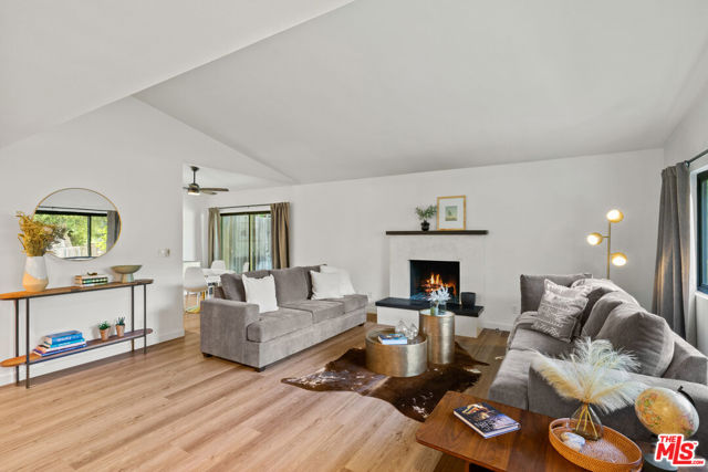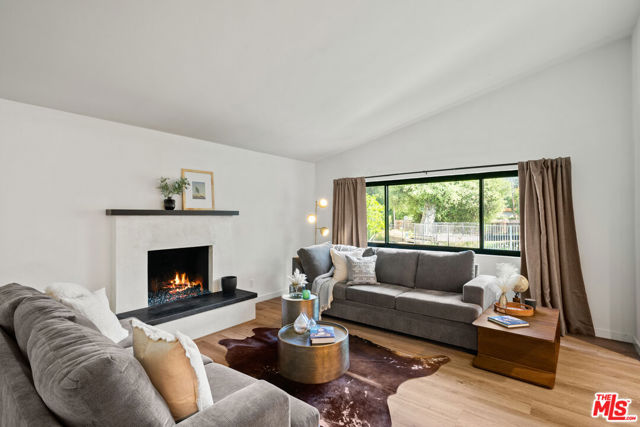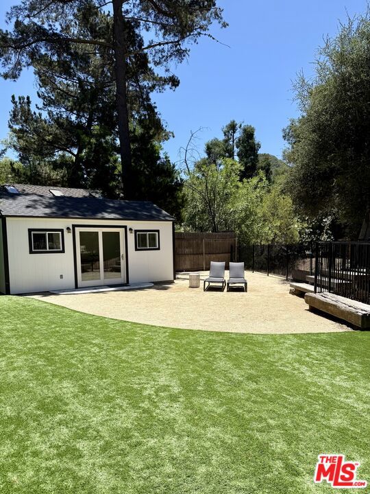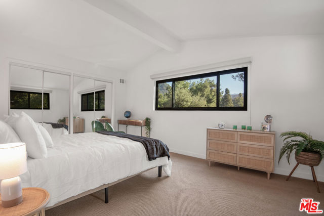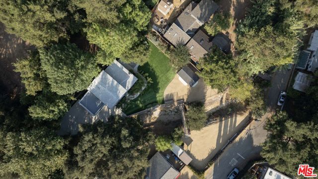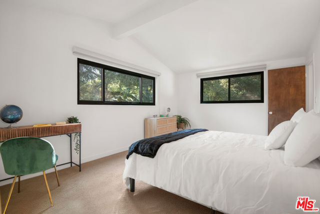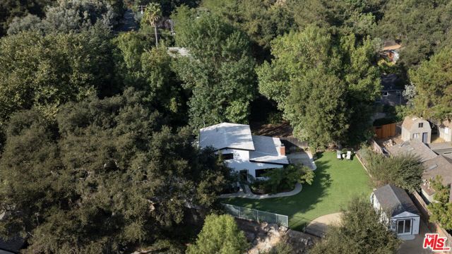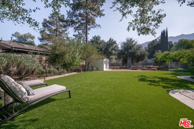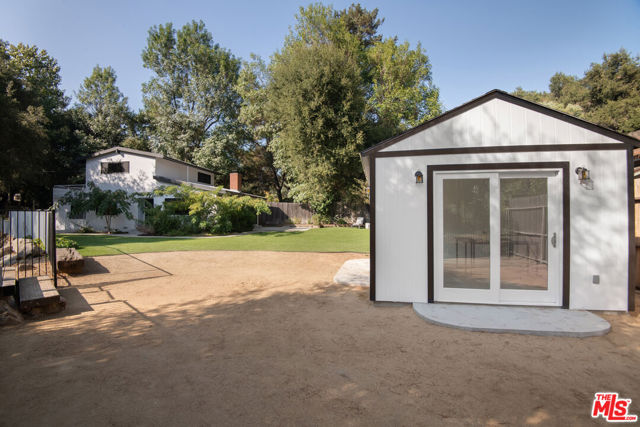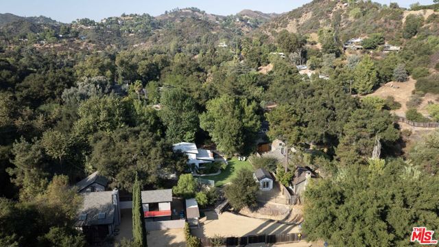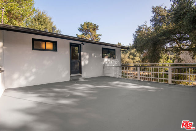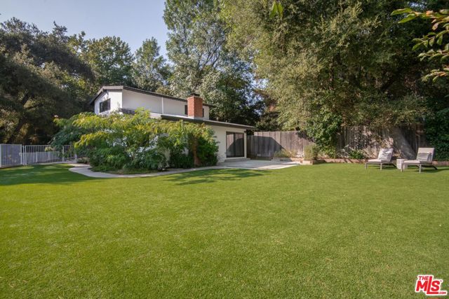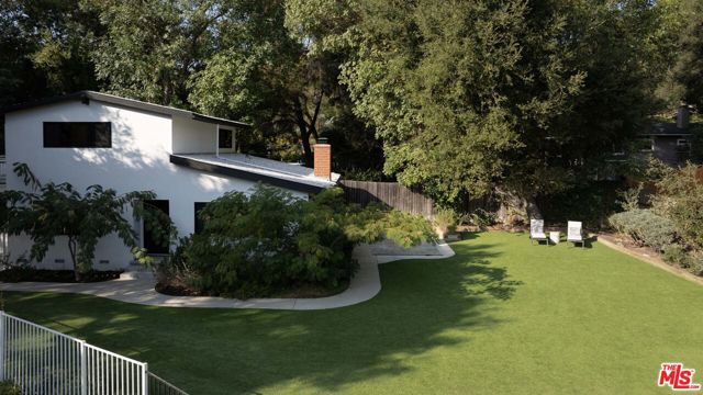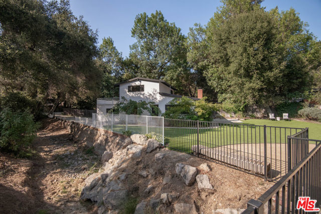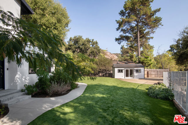 A rare property in Old Topanga with a second entrance from the quiet Bonnell Drive. This beautifully remodeled view filled three-bedroom home offers modern amenities, unexpected upgrades, and one of the largest flat lots in the area. You'll appreciate the expansive, usable yard rarely found in Topanga.The home features a stylish kitchen with classic white shaker cabinets, sleek quartz countertops and stainless appliances. You'll love cooking and entertaining in this beautiful space, which opens up to a lovely outdoor patio where you can soak in the peaceful ambiance of your surroundings. Kitchen accesses a full laundry room with storage, utility sink and a side entrance to outdoors. The main level includes one bedroom and full bath, while two additional bedrooms and a full bath are located upstairs, with access to the second story deck. The spacious living room has vaulted ceilings, recessed lighting, and a striking fireplace, creating a bright and inviting atmosphere for entertaining or relaxing. Upgraded privacy-maintaining windows fill the space with natural light while ensuring a peaceful indoor retreat and blocking the UV rays. The real magic of this property lies outside, where you'll find a sprawling, beautifully landscaped yard with plenty of space for outdoor activities and entertaining, while being completely fenced. In the rear of the yard is a detached studio guesthouse, complete with a 3/4 bath and patio. Outdoors offers one of the largest, flattest yards in Topanga Canyon, with a large patio area, easy care turf. A wooden bridge crosses over the seasonal creek leading to another sunny yard perfect for those wanting to have a veggie garden, complete with a container ideal as a workshop, garden shed, or additional storage. with water and electric outlets The second entrance on Bonnell Drive has an automatic gate and room to park an RV or extra cars. Additional highlights include a two-car garage equipped with an EV charger, Ring doorbells at the front entrance and garage.A rare find in Topanga, this property combines flat usable land, upgraded finishes, and quiet privacy It's a short distance to Bonnell Park, Red Rock Park and the Skyline Loop. Improvements completed in 2023 and 2024 include roof, windows, HVAC, kitchen and bath remodel, flooring, paint, plumbing, electric, detached guest house/office and automatic gate on Bonnell. Both full baths have also been remodeled in the same style as the kitchen. All flooring has been redone, with warm toned high-quality engineered wood and carpets.