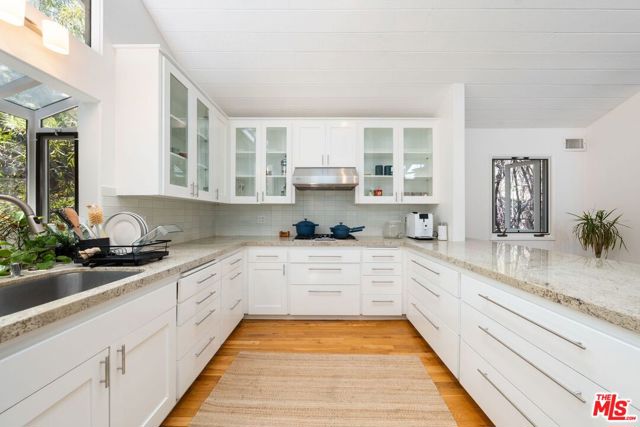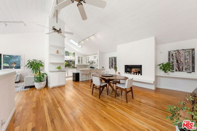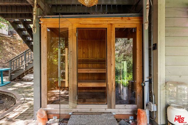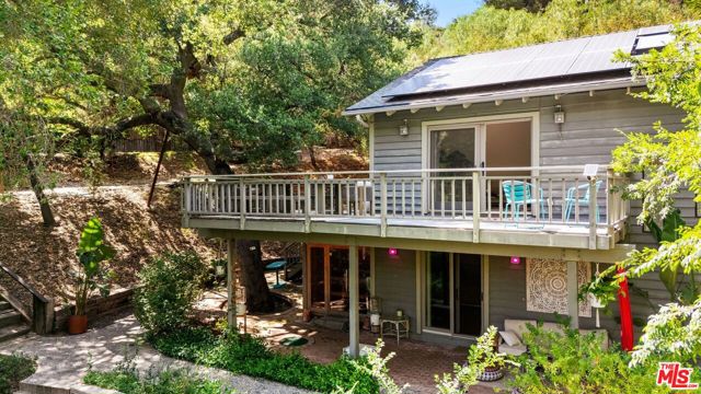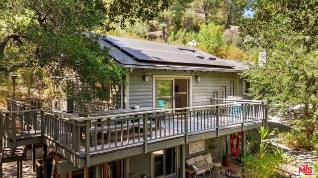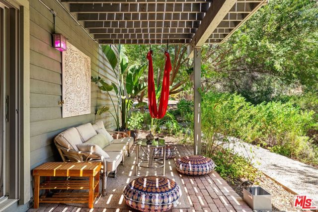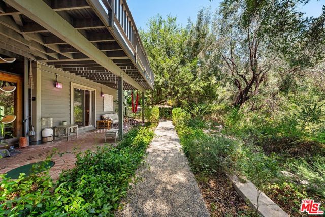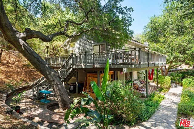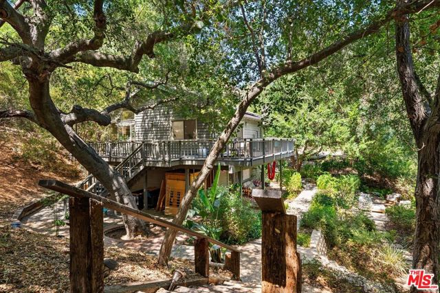Welcome home, to your own gated, private Topanga sanctuary. Enter the gates and step into a realm of natural timeless beauty with this exquisitely crafted Cape Cod estate, where every detail has been curated to evoke warmth and harmony with nature. Gleaming wide-plank oak floors, soaring vaulted ceilings, and a flood of natural light create a sense of airy grandeur, while expansive picture windows and glass doors dissolve the boundaries between indoors and out. The culinary heart of the home is a gourmet chef's kitchen, appointed with premier stainless-steel built-ins, dual ovens, and artisanal limestone countertops, a space as functional as it is beautiful. The adjacent dining area, anchored by a showpiece fireplace, flows effortlessly to a sunlit deck ideal for morning lattes, intimate sunset dinners, or lively gatherings, with no neighbors in sight. The primary suite is a private retreat, boasting its own fireplace, generous custom walk-in closets, and a large en-suite bath complete with a deep soaking tub and serene garden views. On the lower level, two spacious guest suites share a luxurious full bath, complemented by a dedicated laundry room and a state-of-the-art infrared sauna; a haven for wellness and relaxation. Beyond the interiors, terraced gardens and manicured lawns unfold to reveal a seasonal creek and meandering woodland paths, offering moments of tranquility and natural beauty at every turn. Just minutes from Endless Color, Pine Tree Circle, The Valley, Malibu, and an abundance of scenic hiking trails, the setting is both connected and remote. An attached two-car garage with Tesla charging station ensures modern convenience, seamlessly integrated into this timeless retreat.