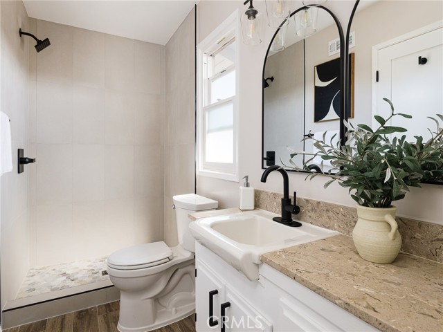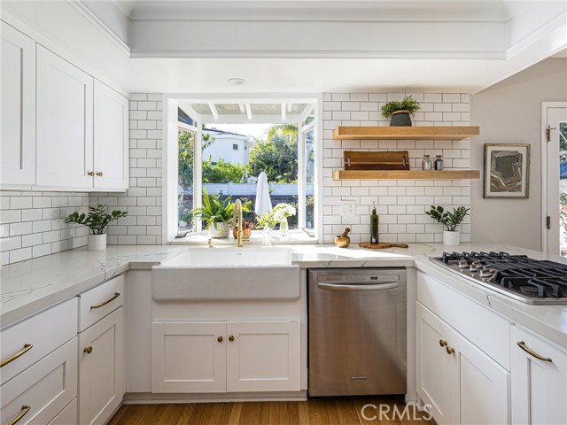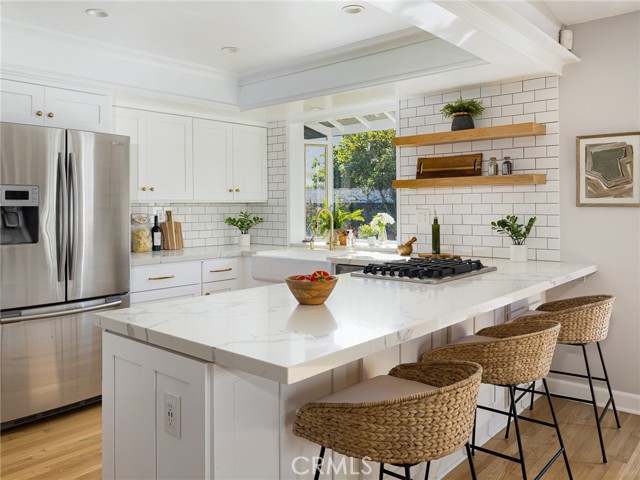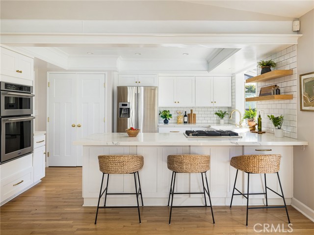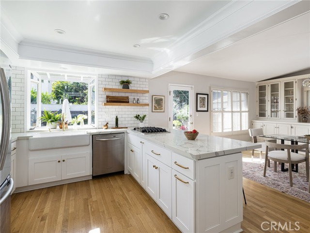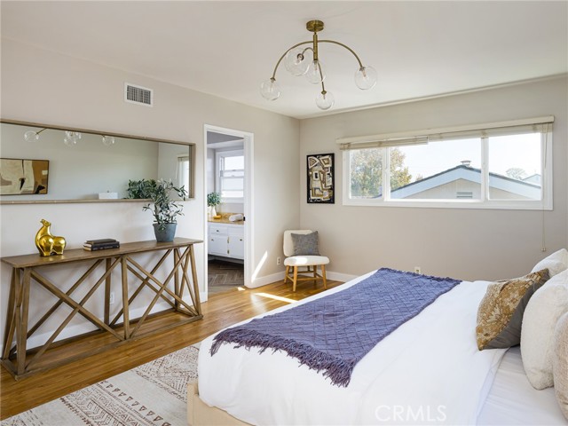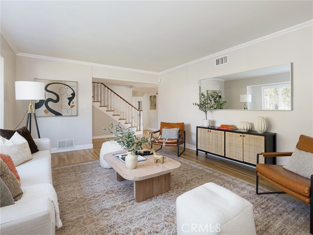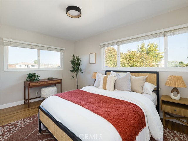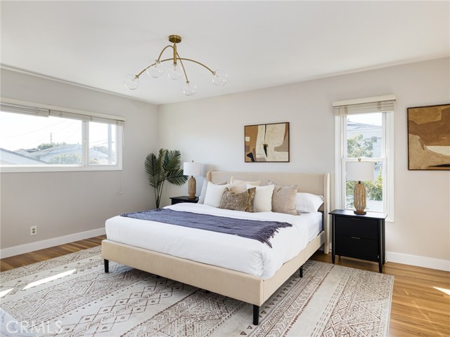 Welcome to this beautifully updated home where contemporary design seamlessly blends with everyday comfort. Flooded with natural light, this home features five spacious bedrooms and three stylishly renovated bathrooms. The inviting living room, complete with elegant crown moulding and a cozy fireplace, sets the perfect tone for both relaxing and entertaining. The remodeled kitchen is a true showpiece, boasting sleek cabinetry, quartz countertops, and modern appliances. Adjacent to the kitchen, the dining room includes custom built-ins that provide both charm and practical storage. High ceilings create an airy, open feel, while the refinished original oak hardwood floors add timeless warmth and character throughout most of the home. Upstairs, the primary suite offers a serene retreat with a beautifully updated ensuite bathroom. Two additional bedrooms on this level share a thoughtfully remodeled Hollywood-style bath. The lower level includes two more bedrooms and an updated bathroom, offering flexibility for a home office, guest quarters, or multi-generational living. Step outside to the spacious backyard with a large patio, above-ground vegetable planters, and fruit trees—an ideal setting for barbecues with friends and family. And with the close proximity to the ocean, you can enjoy refreshing coastal breezes while you relax. Located within walking distance of Torrance’s award-winning schools, this home sits in a friendly neighborhood known for its welcoming community. Don’t miss the opportunity to make this exceptional property your own—where style, comfort, and convenience come together beautifully.