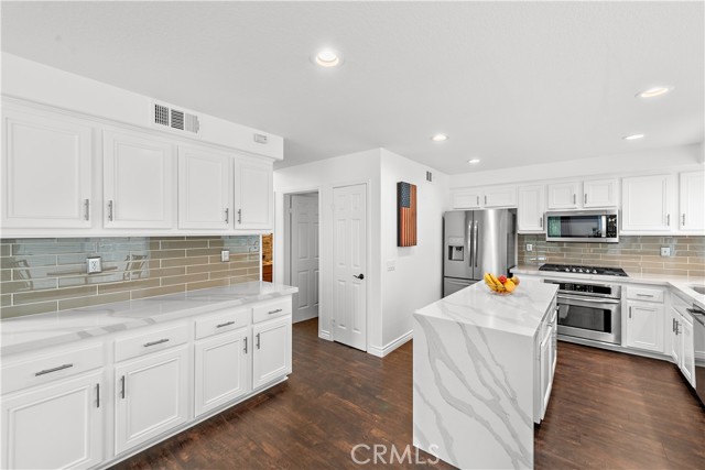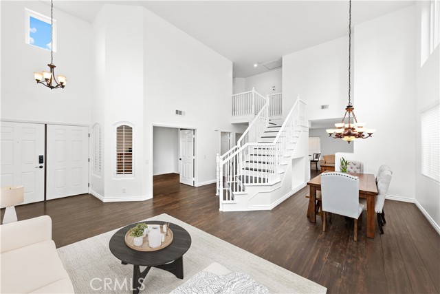 Welcome to 24 Drover—where timeless design meets modern comfort on one of Trabuco Canyon’s most coveted streets. This beautifully renovated 4-bedroom residence offers exceptional livability with a highly sought-after downstairs room and bath, perfect for guests, multi-generational living, or a private office. Meticulously maintained and move-in ready, the home features updated finishes throughout and a thoughtfully designed floor plan that maximizes space and natural light. The living room includes vaulted ceilings and warm natural light all year round. The kitchen has been tastefully and thoughtfully upgraded with quartz kitchen island, gleaming white cabinets and stunning backsplash tile. Step outside to your private patio that includes a spa—an ideal retreat with elevated views overlooking the neighborhood, creating the perfect setting for morning coffee or evening relaxation. Experience pride of ownership and the rare blend of elegance, comfort, and location.