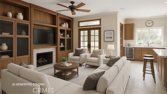 Perched atop a serene cul-de-sac in the prestigious Portola Hills enclave of Trabuco Canyon, this beautifully maintained two-story home offers an exceptional lifestyle. Enjoy panoramic vistas—from the shimmering Pacific Ocean to untouched wilderness—right from your doorstep in one of Southern California’s most exclusive neighborhoods. A grand hardwood staircase greets you upon entry, setting a warm, sophisticated tone. The open-concept main level is designed for both comfort and entertaining, featuring vaulted ceilings, rich wood finishes, and custom cabinetry. The formal living and family rooms are filled with natural light, enhanced by elegant shutters and windows that frame scenic views. Whether enjoying a quiet evening or hosting guests, these spaces blend ease and style. Culinary enthusiasts will love the expansive chef’s kitchen, outfitted with hardwood cabinetry, granite countertops, and a central island. Premium appliances include a Viking cooktop, double oven, microwave, dishwasher, refrigerator, and 48-bottle wine cooler—everything needed to elevate meals or entertain with flair. The adjacent dining area features soaring ceilings and abundant light, making every meal feel special. Just off the main living area is a versatile fourth bedroom, currently used as a wired office—ideal for remote work or study. A nearby full bathroom makes this wing perfect for guests or multigenerational living. The laundry room, with washer, dryer, utility sink, and storage, connects to the oversized three-car garage with built-in cabinetry. Upstairs, retreat to a luxurious primary suite that feels like a private resort, with vaulted ceilings, sitting area, expansive closet, and a spa-inspired ensuite featuring a soaking tub, dual vanities, and sunlit shuttered windows. Two additional bedrooms share a thoughtfully designed full bathroom. A bonus room between them is perfect as a playroom, media room, or reading nook. Step into the landscaped backyard and enjoy Southern California living year-round. The private patio is ideal for al fresco dining, entertaining, or relaxing while kids play on the lawn. Mature avocado and pomegranate trees, both fruit-bearing, add charm and seasonal bounty. Residents enjoy Portola Hills HOA amenities: pool and spa, kid’s pool, clubhouse, tennis courts, playground, and nearby hiking and biking trails. Families will appreciate proximity to award-winning Portola Hills Elementary School.