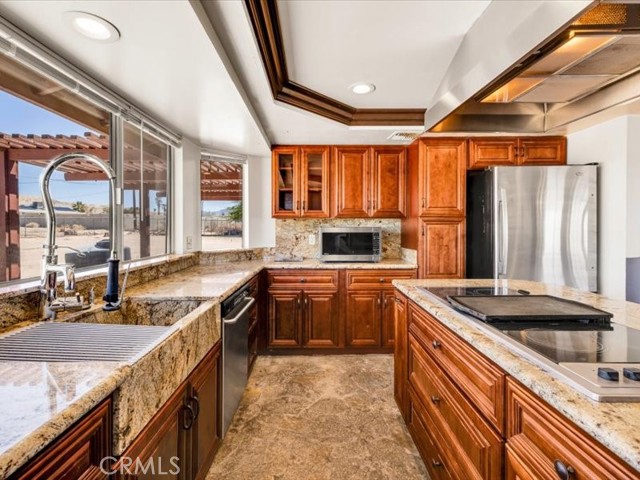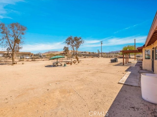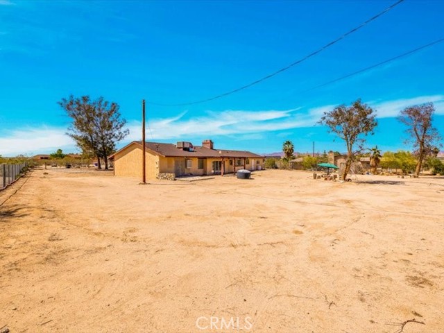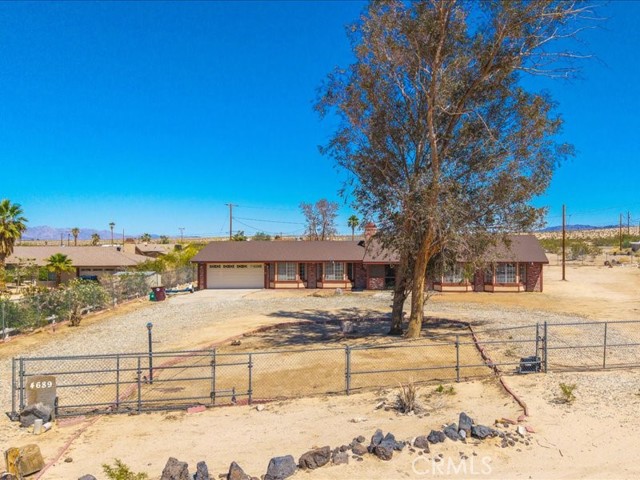 Welcome to this beautifully updated 2,055 sq ft home, ideally situated on a generous 0.7-acre lot in a desirable, family-friendly neighborhood. Nestled at the end of a quiet cul-de-sac, this property offers privacy, security, and comfort—perfect for everyday living or a peaceful retreat. Step inside and enjoy peace of mind with major upgrades already completed, including a brand-new roof, new septic system, new HVAC heat pump, and all-new ducting—ensuring efficiency and long-term value. The fully fenced lot is secured with a private gate, offering both security and ample space for outdoor activities, RV parking, or future additions. Surrounded by mature landscaping, the backyard is ideal for relaxing or entertaining. Located just minutes from a scenic golf course, the town park, and a short drive to the iconic Joshua Tree National Park, you’ll enjoy the perfect blend of nature, recreation, and convenience.
