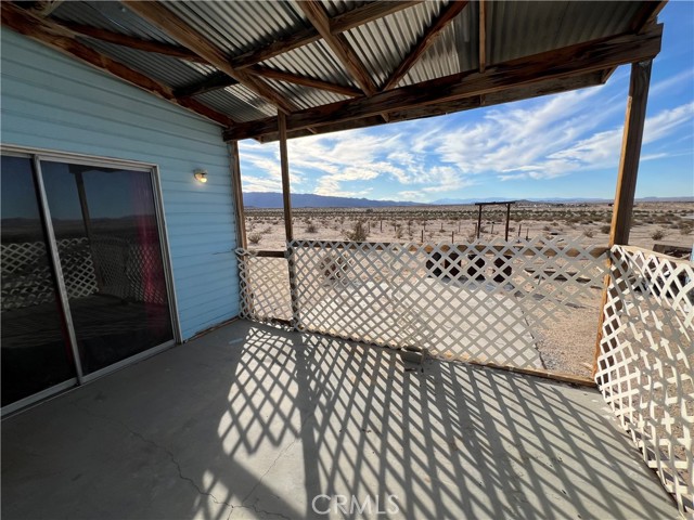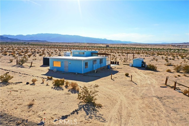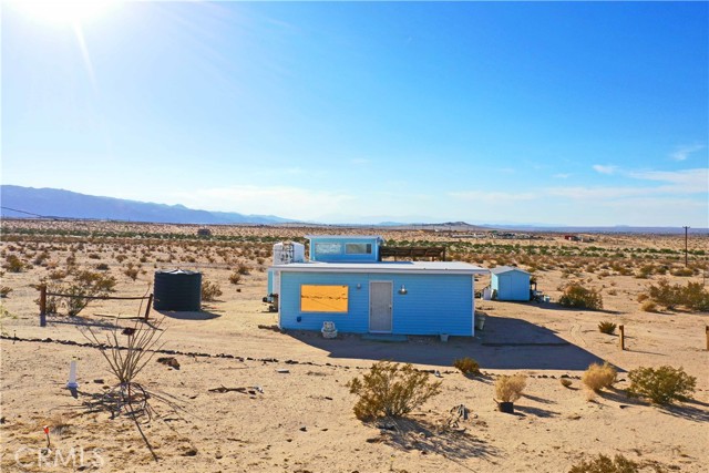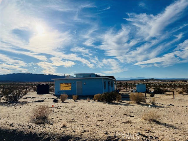 This 3-bedroom, 2-bath home sits on 5 wide-open acres with peaceful mountain views and space to build your vision. Inside, you’ll find a bright living area and a spacious primary suite with a walk-in closet, private bath, and direct access to the back porch. It’s the perfect spot to take in colorful desert sunsets or unwind under the stars. The property has all utilities in place and runs on hauled water, with the option to install a well for added convenience. There’s plenty of room to build a garage, add a guest house, or bring the existing horse corral back to life. Located just a short drive from town, the home offers a sense of privacy while still being close to local shops, dining, and everyday essentials. You’re also near Joshua Tree National Park, downtown Twentynine Palms, and the Marine base. Whether you’re looking for a weekend getaway, a full-time desert home, or an investment with potential, this property gives you room to create something special. Priced to sell. Ask about renovation loan options.