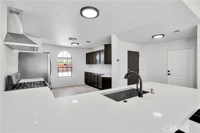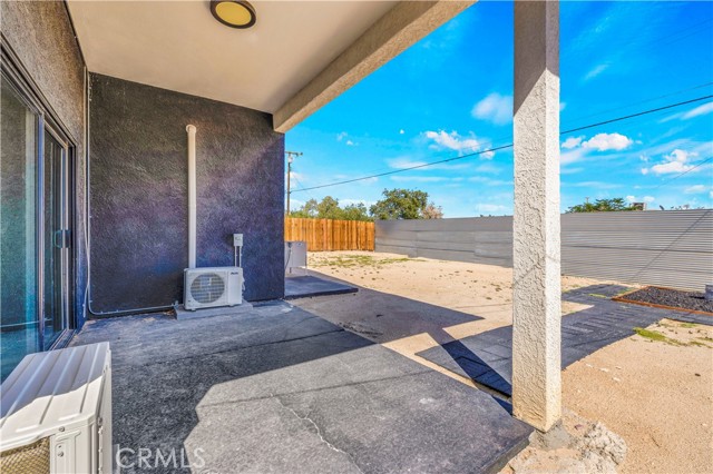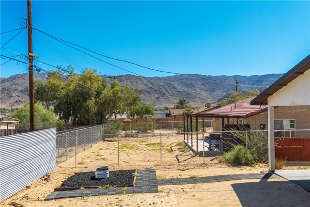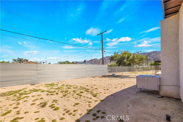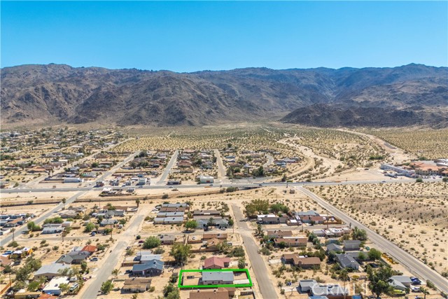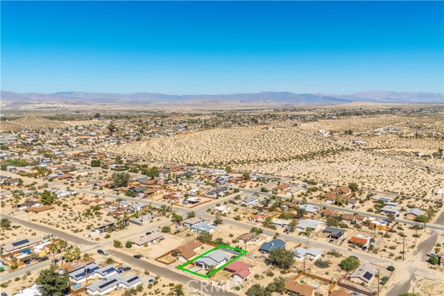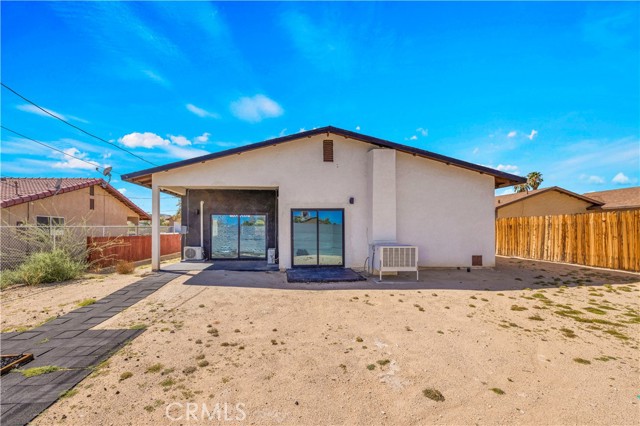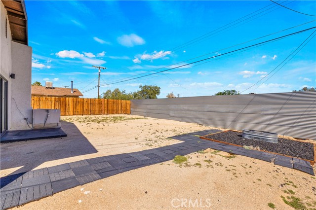 This lovely 3 bedroom, 2 bath home is conveniently located in the Chocolate Drop area of 29 Palms. As you approach the property, you'll appreciate the paved driveway that leads to the attached 2 car garage, and the new wooden fencing that enhances privacy. Step inside to find yourself in a generously sized open concept living area with tile floors, large double-pane windows, and sliding glass doors leading to the outdoor living space. The spacious kitchen features a breakfast bar, stainless steel appliances (including gas range for the serious chef), pantry, and plenty of cabinet and counter space. The primary bedroom features its own private slider to the backyard, and the large attached bath enjoys dual sinks and a tub/shower combo. You'll find the two guest bedrooms to be nicely sized and well lit with lots of closet space, and you'll appreciate that every bedroom has a ceiling fan and mini-split for perfect zoned climate control year round. Rounding out the property, there is also an indoor laundry room, a finished garage, and plenty of space in the backyard to relax. Book a showing to see this great home for yourself!