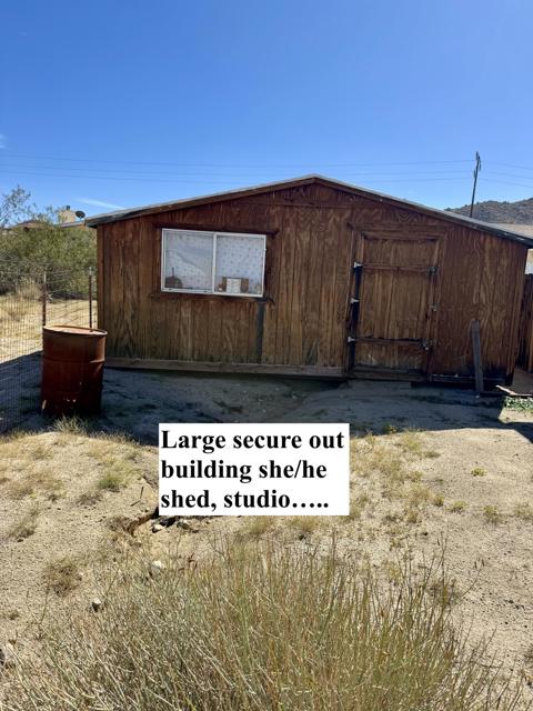DRASTIC PRICE REDUCTION MUST SELL TODAY! Desert Oasis on Over 1 Acre - Very close to Joshua Tree. Room to grow!!Incredible location with panoramic desert views! This meticulously maintained, one-owner home is situated on just over 1 acre, ideally located between Joshua Tree and 29 Palms. Built in 1986, this newer construction features a 2-car attached garage, covered RV parking, multiple storage sheds, and a fully fenced yard.Enjoy privacy, space, and functionality with city water, electric, septic, and propane already in place. Bonus 15x15 detached structure is ready to be transformed--perfect for a studio, workshop, or guest space.Move-in ready with tons of potential to add value and make it your own. Peaceful setting with the convenience of being close to everything--shops, schools, and Joshua Tree National Park--while feeling worlds away in your own private retreat.Don't miss this rare opportunity to own a well-kept home in a prime high-desert location. Call today for a private showing!