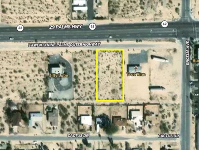 Large 1/2+ acre zoned commercial with Hwy visibility on an outer hwy road for easy customer access. Located in the trendy Smoke Tree neighborhood of 29 Palms. Set adjacent to one of the main malls in the city. Pavement, power, and water appear to be available, also alley access. The City may allow for retail, restaurant, drive through, tourist services, church, or more. Set about a half mile from the base of the 49 Palms Canyon. The Smoke Tree neighborhood is known for its awe inspiring views of Little San Bernardino Mtns. 29 Palms is enjoying new restaurants, new shops, new retail buildings, new hotels, the new Freedom Mall, and expanding economic growth. About 3 million tourists visit the Joshua Tree National Monument annually. Hot vacation area. The Tortoise Rock casino, the 29 Palms Inn and Oasis, and the Marine Base are some well established anchors of the community. Mild winters have some people calling 29 Palms a Little Palm Springs. In recent years more celebrities, architects, designers, musicians, and artists have discovered the beauty and peaceful ambiance of the area. Priced to sell. Buyers must contact the city for all questions on building and uses. Buyers must contact the utilities agencies for all questions on utilities. APN: 0615-041-09-0000 Address is a real address. Don't Wait - Call Now!