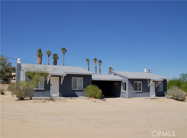 1 bed, 1 bath FULLY furnished single-story duplex with NO common walls, and adjoining shared carport. Both units feature separate water heaters, appliances, and two wall units (living room and bedroom) ensuring year-round comfort for residents. Roof, AC units, flooring, and cabinets all in superb condition. Washer and dryer located in carport. BOTH units are clean, meticulously maintained, and in excellent condition offering modern living spaces. This is a fantastic opportunity to generate rental income, while enjoying the benefits of homeownership. For added convenience, BOTH units are currently leased. Centrally located near downtown, close to Marine Corps Base, and the Joshua Tree National Park.