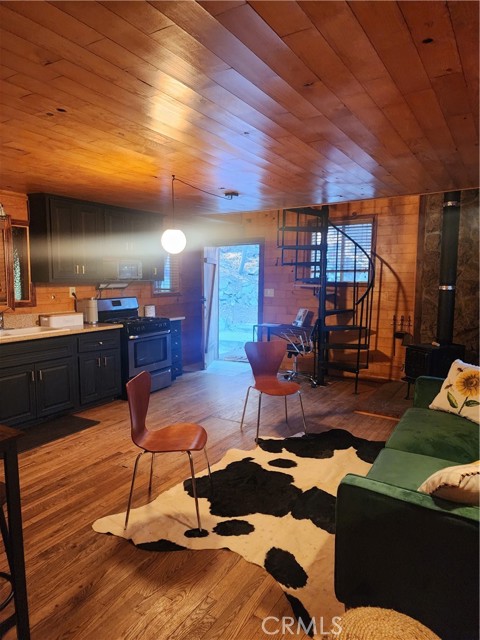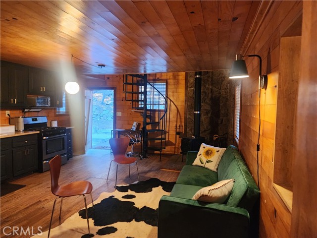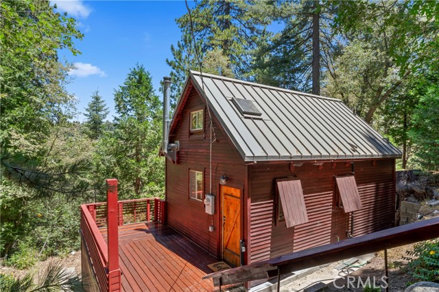 Price Improvement! Vintage Mountain Charmer on a large 15,000 sq foot lot with amble parking. Cabin Built in 1952 with Metal Roof and Skylight. Circular staircase to main bedroom, open concept. Wood Burning stove, wood flooring. Located in Twin Peaks community of Strawberry Lodge. Centrally located between Crestline and Lake Arrowhead. Mature Trees offer a sense of seclusion and privacy. Nice size deck for entertaining and or just a quiet moment sipping coffee and taking in the beauty of nature. Entrance off the front deck onto main living, kitchen open concept. There is an additional room of the main living area that has been used as a sleeping quarters, up the spiral staircase is additional loft/bedroom with built in nook and storage. Cabin and decks have been recently stained. Perfect cabin for those weekend getaways.