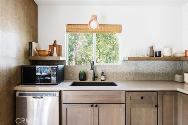Tucked away in the heart of Twin Peaks, Elysian Hill is a stunning, fully remodeled Japandi-inspired cabin that offers the perfect blend of modern sophistication and serene mountain living. This 2-bedroom, 1-bath retreat is not only an idyllic personal escape but also a highly-rated, turnkey investment property. With its beautifully renovated interior, Elysian Hill features a striking Tadelakt bathroom, showcasing artisan craftsmanship and a smooth, luxurious finish. Every detail throughout reflects a dedication to quality, from the hand-crafted wood accents to the clean lines of the open-concept living area. The floating Swedish fireplace adds both warmth and elegance to the space, making it the ideal spot for relaxation. The modern kitchen is equipped with high-end appliances, custom cabinetry, and sleek countertops, making it a perfect space for both cooking and entertaining. Your private back deck offers a tranquil oasis perfect for enjoying the natural beauty of the surrounding landscape. Perfectly located between Crestline and Lake Arrowhead, you can easily enjoy the best of both worlds.With a driveway offering off-street parking and Level 2 ChargePoint EV charger , the property combines privacy, convenience and accessibility. Elysian Hill is the perfect turnkey investment opportunity, ready to welcome guests or serve as your personal sanctuary. Whether you’re seeking to invest in a highly-rated rental property or a peaceful retreat, this finely cultivated cabin delivers on both fronts, combining the best of modern luxury with mountain tranquility.