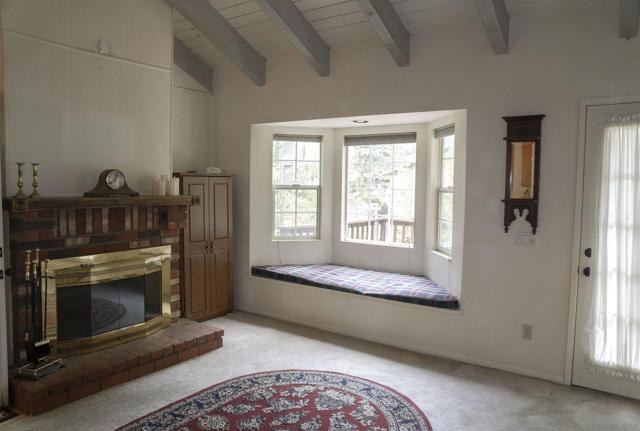 Step into the storybook setting of this single-level mountain cottage, tucked among whispering pines and vibrant maples. With its spacious deck overlooking the forest, this home invites you to host unforgettable gatherings, sip morning coffee in the crisp mountain air, or simply unwind beneath the stars. Inside, natural light pours through bay windows and vaulted ceilings, creating a bright, open feel that complements the warmth of the brick fireplace and built-in window seat—a perfect nook for snowy afternoons and quiet reflection. The 3-bedroom, 1.5-bath layout includes a private primary suite with its own half bath and clever storage solutions. The level entry and minimal stairs make access a breeze, while the setback location offers privacy and a peaceful buffer from the road. Outside, the front courtyard bursts with fall color and features a raised flower bed ready for your personal touch. A two-car garage with built-in workbench and attic storage adds functionality, and the home’s classic bones offer a canvas for updates and personalization. Whether you're envisioning a weekend escape, a full-time residence, or a rental with strong appeal, this property is brimming with potential. Just minutes from Blue Jay Village, Lake Arrowhead Village, and Lake Gregory, with easy access down the mountain—this is your chance to own a slice of serenity with convenience built in. Come see the possibilities. This mountain gem is ready for its next chapter—will it be yours?